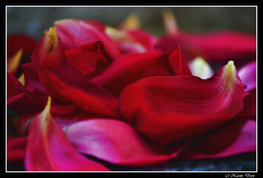 This was shot outdoors, bright light, ISO 100. The petals below were shot indoors, handheld, at ISO 2000, and using the macro portion of the lens.
