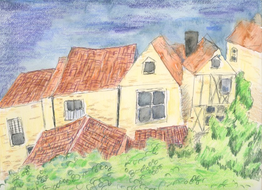 And here is the final picture. Parts work, parts don’t. Watercolor pencils are really interesting, just as is the iron gall ink. As an experiment in a new media altogether, I rather enjoyed the experience. I did learn a bit in the process, which was the point – how and what to do with watercolor pencils? I couldn’t write a dissertation on it. I can tell you it was a lot of fun, and I know I will revisit them in the future.