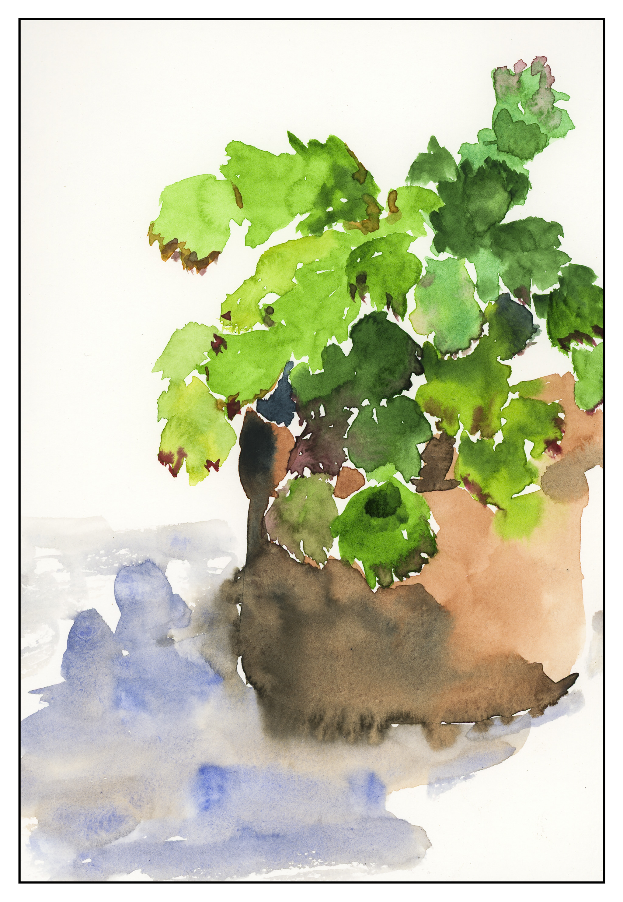 I got a new watercolor sketchbook the other day, a Pentalic spiral bound with 140# paper.  I took it out to the patio and painted one of my Christmas cacti to see how the paint and paper responded.  It’s pretty nice paper, and it was pleasant to sit outdoors for a bit before the rains hit tonight.  This is also a study in direct watercolor – brush, paint, paper, without lines.