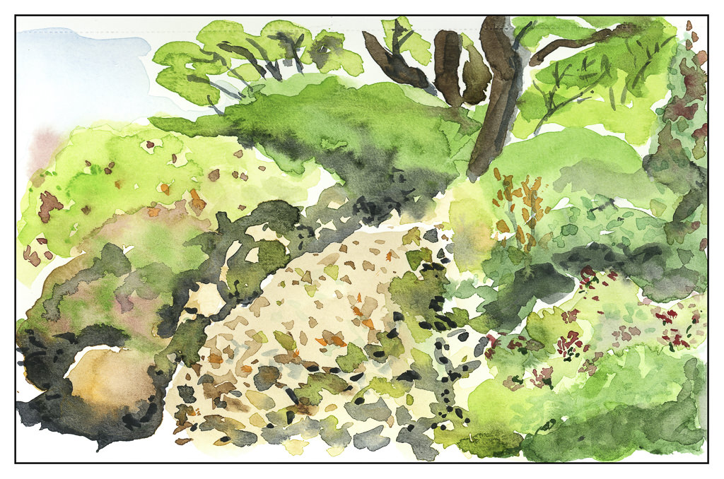 In the Garden From a photo I took not too long ago – a bit of the local botanical gardens. There is a path in there somewhere, but it got lost! Direct watercolor is not easy to do. Share this:Share Click to email a link to a friend (Opens in new window) Email Click to share on Facebook (Opens in new window) Facebook Click to share on Reddit (Opens in new window) Reddit Click to share on X (Opens in new window) X Like Loading... Related