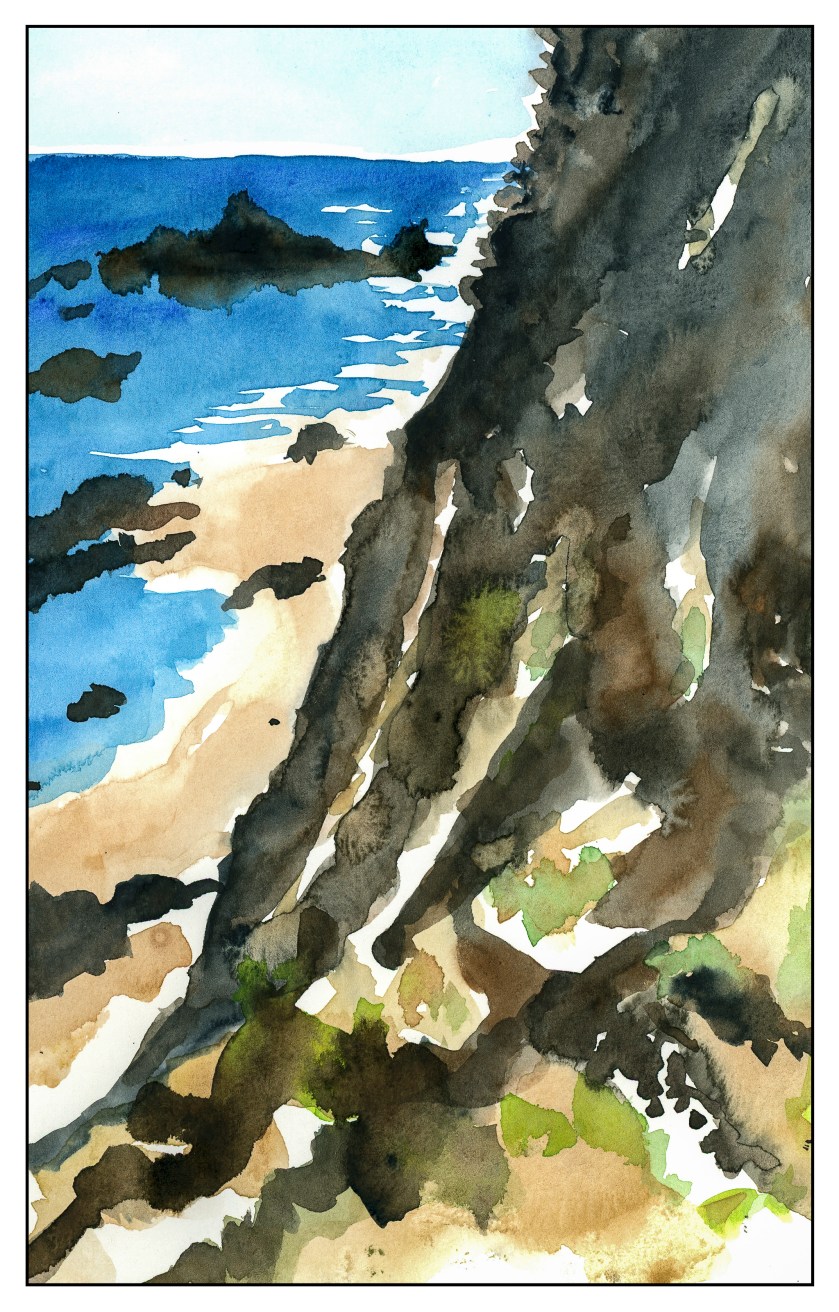 I think I am going to return to this one again, as it is from a photo I took a couple of years ago along the coast. The bluffs are really intense. The problem lies in rendering the ocean and beach below them – lack of depth and overworking.