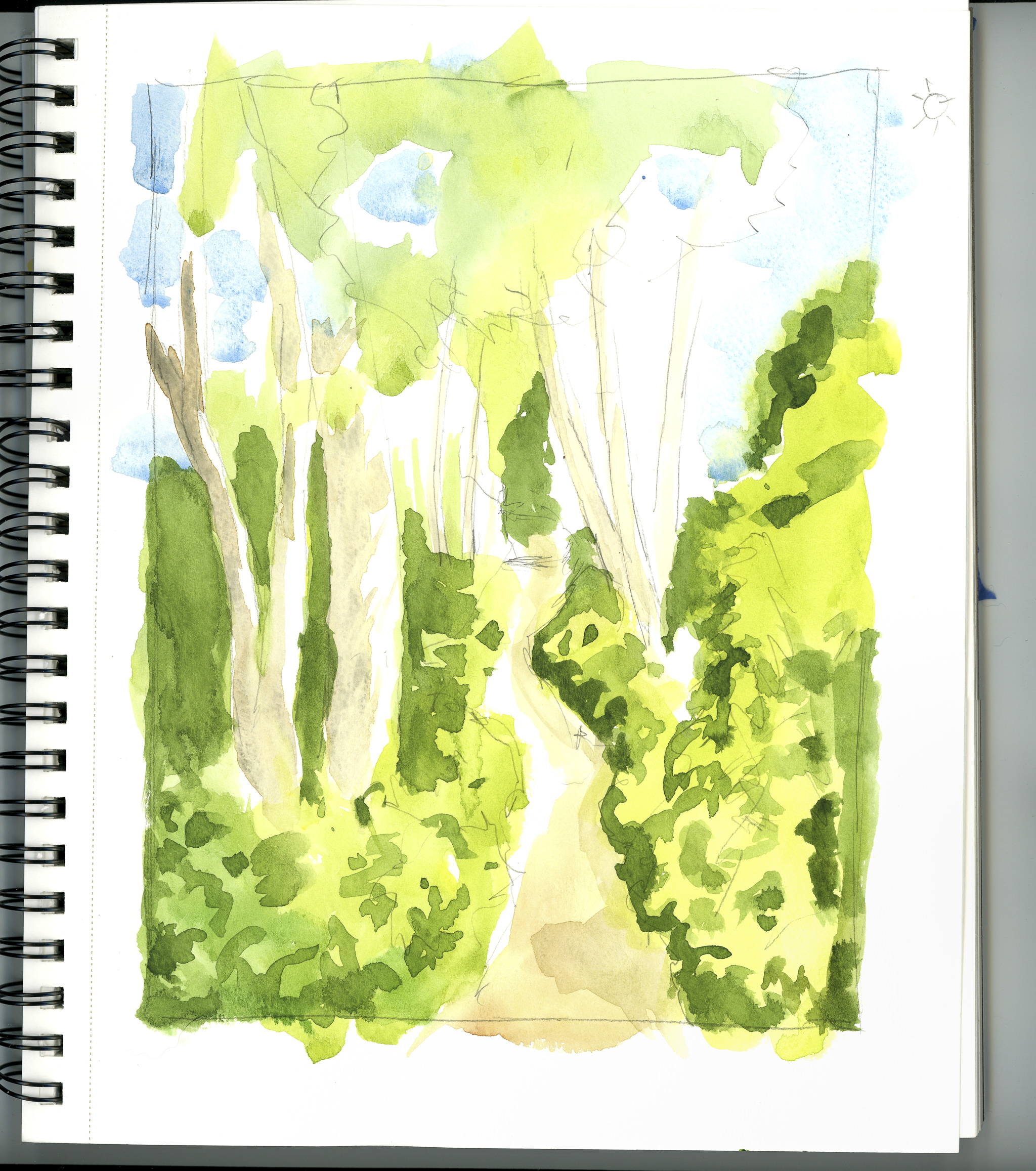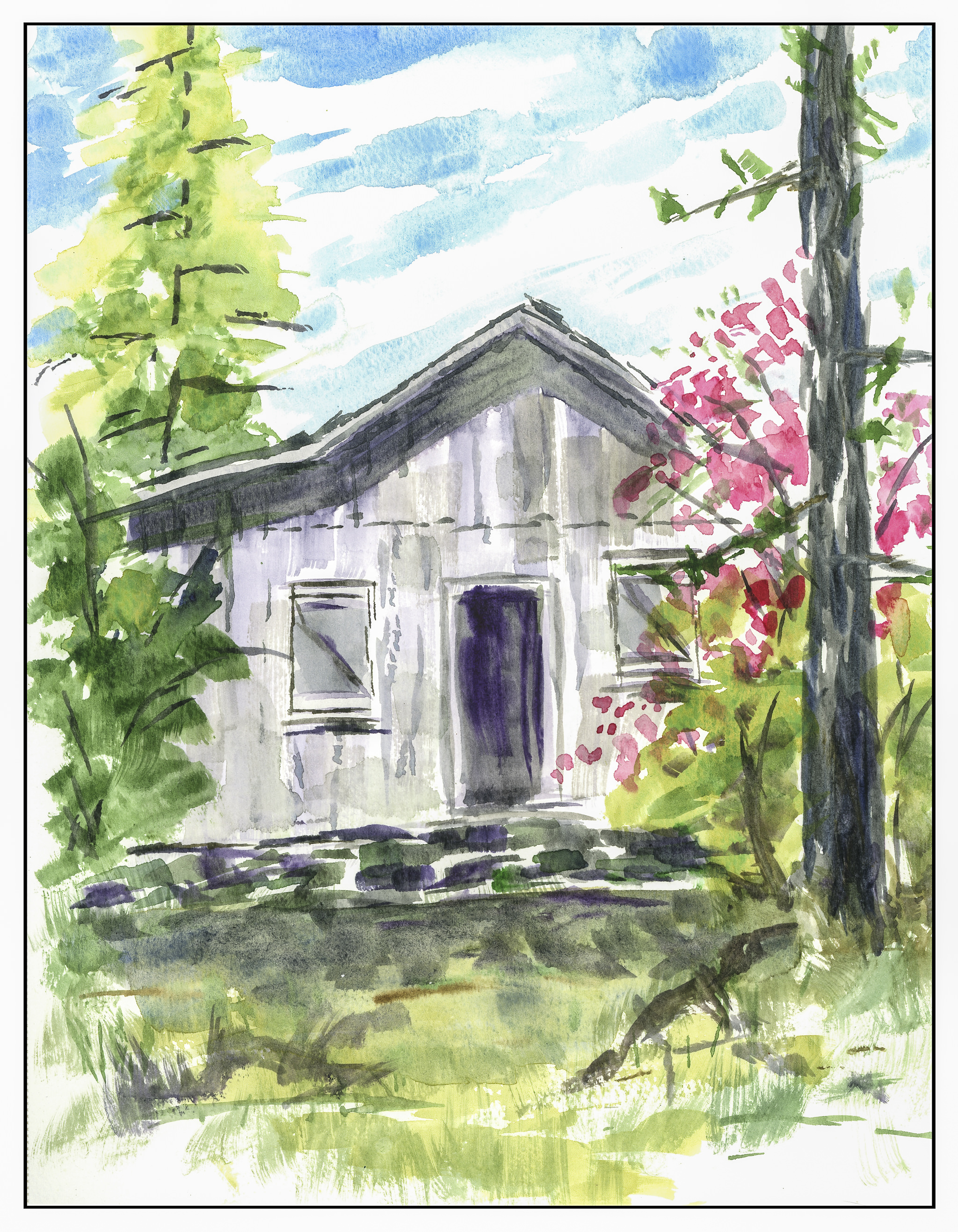 Another direct watercolor painting, this time limited to a 1/2 inch flat brush for everything. The colors are cleaner, for sure, but the contrast of light and shadow are off. The fun part was learning that yes, you can paint with only a flat brush.