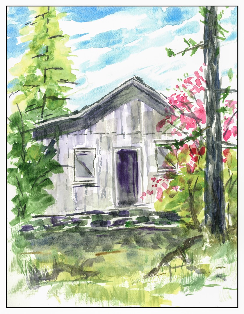 Very difficult to paint something as ordered as a building without some guidelines such as pencil -lines – though I think you did well on the second painting and there is something to be said about the first painting, especially the areas of white paper – it’s just a sketch after all.