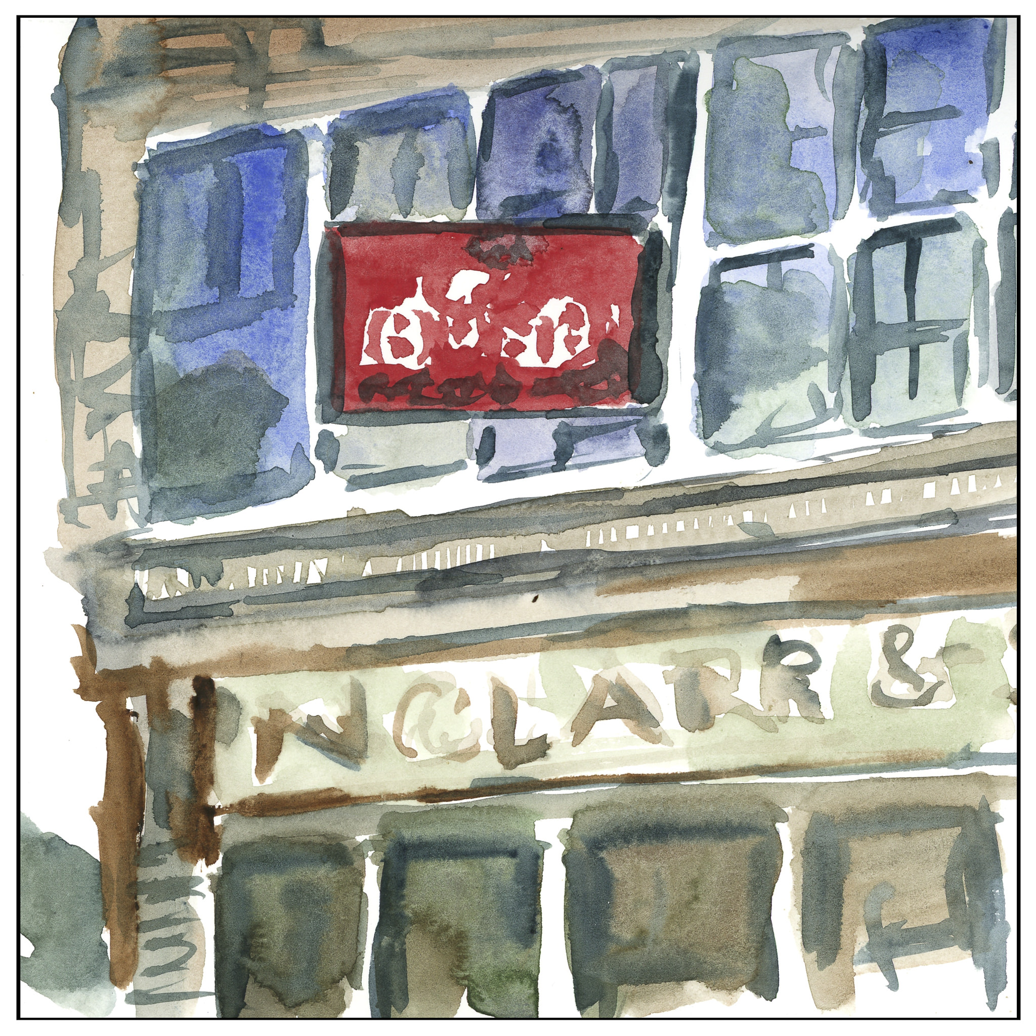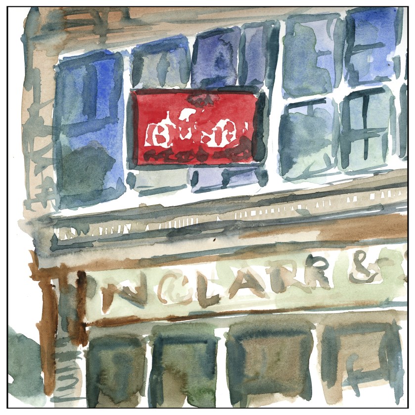 Focusing on “direct watercolor” – painting without any preliminary drawings or value studies – is sort of what I am trying to do on a daily basis. This is from a photo, and the study was windows and reds and buildings. The proportions are off, and that feels like failure big time. The colors were all the dregs on the palette, so most were muddy and not interesting, but determined not to waste paint, why not? I also used a water brush, and that can make colors even murkier if you don’t squeeze out excess water.