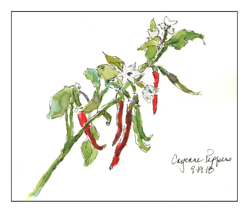 I am continuing the simple task of a sketch or watercolor or ink-and-watercolor every day while I have time. I admit I am afraid to go much further than that. Why? Good question.