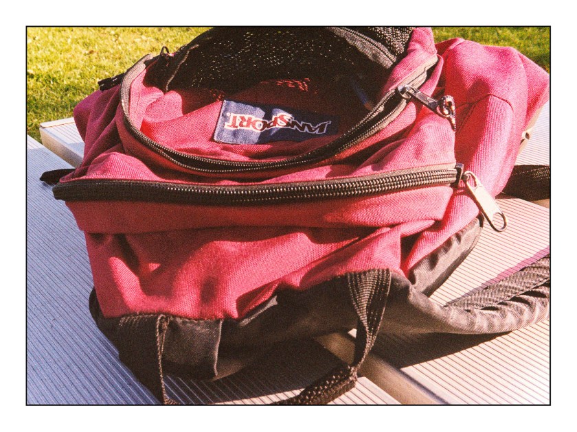 I used UltraMax 400 as the first roll through the camera. Images were sharp and clear, whether I focused at 3 feet (day pack image) or at infinity. My guestimations worked out – I used the Sunny 16 rule for 100 iso film. The latitude of the Ultramax was just fine. A few pictures straight out of the camera, first.
