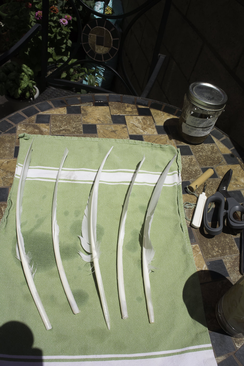 Previous Image Next Image First Quills – Preparation & Cutting (6 of 23) Feathers ready to scrape out the membrane.