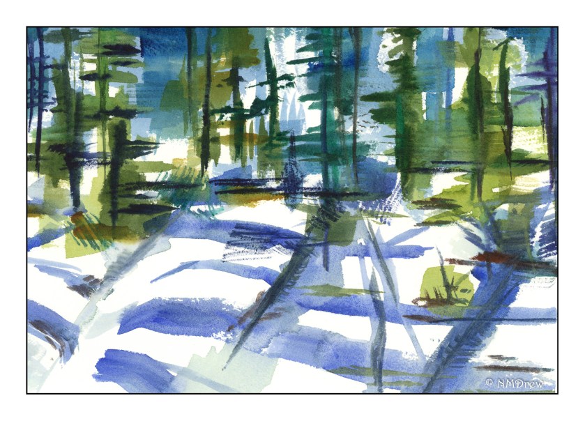 I really like this one – the colors just are so beautiful (to me). I think the abstraction worked to catch trees and snow in the spring, although perhaps I could redo it more simply.