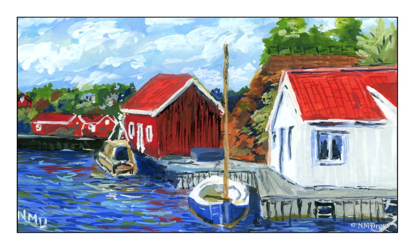 Here, gouache. This took hours. About an hour drawing and probably three hours painting it. It works to a degree. All this for a 5×7 painting!!