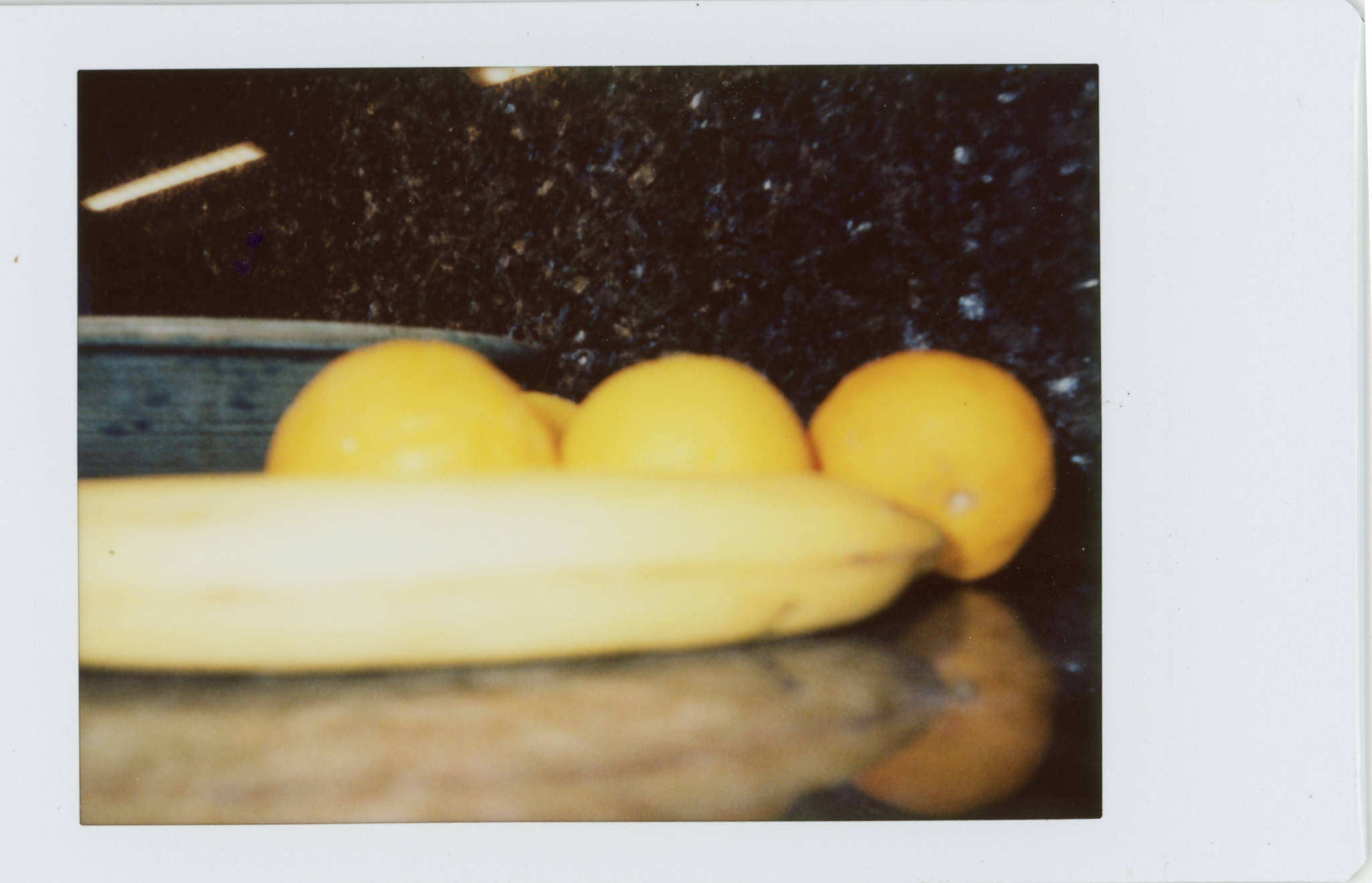And finally, as the daylight fades, the banana and lemons on the granite countertop.