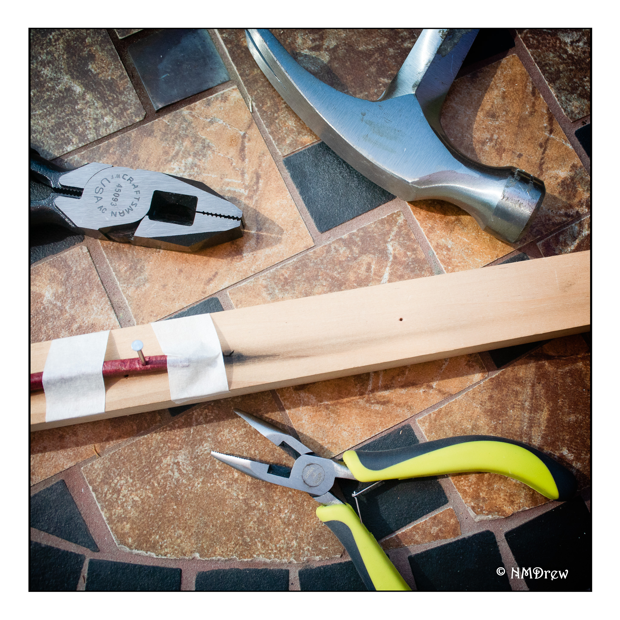 Previous Image Next Image The Free No 5 (2 of 8) Tools to nail hole in drive band, with pliers and cutter to make a smooth end.