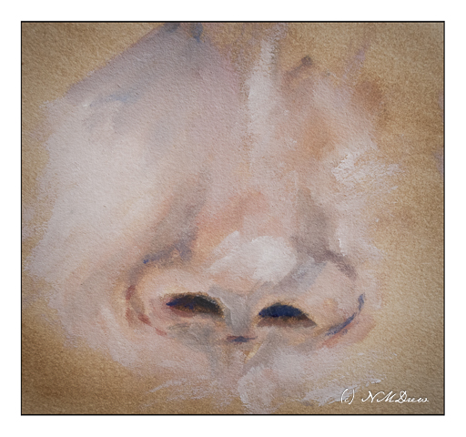 This is the nose of the same child, done separately on a different part of the paper. My brushwork became a bit more loose and I played a bit more with mixing colors not just on the palette, but on the paper as well for blending.