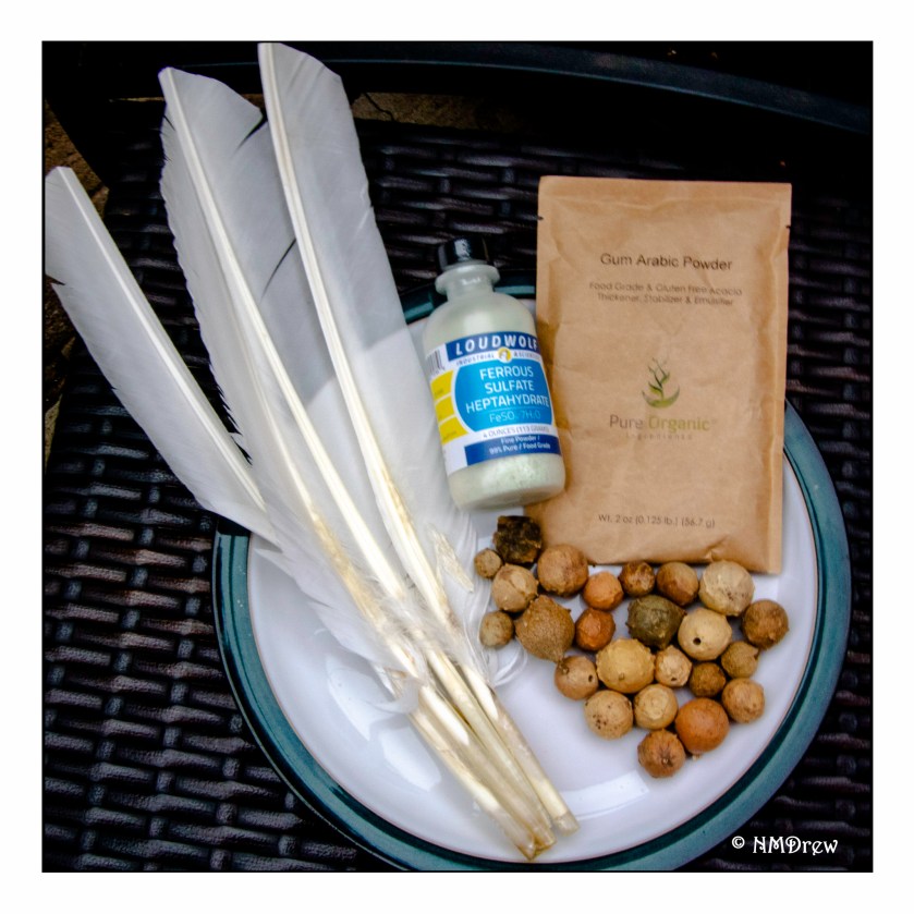 Yesterday’s post was about oak gall ink (which I may also refer to as “iron gall ink”), how it is made, some historical information, and what not. Today I will tell you about what I did, accompanied by my fine photography!