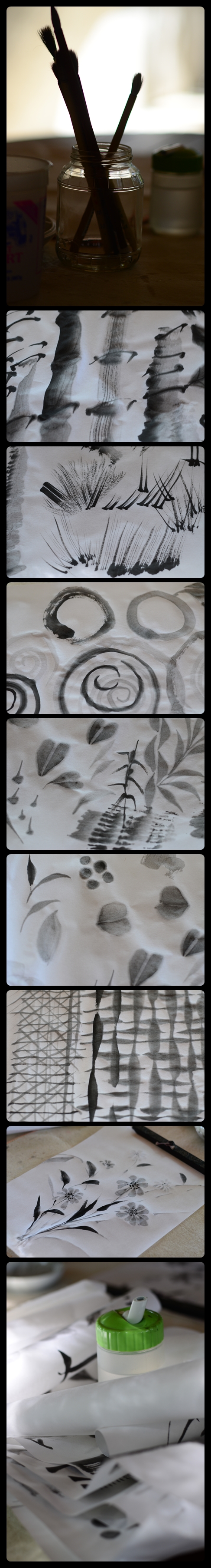 When I was doing a lot of sumi-e, I hated the brushes and the paper – they had their own qualities which, one mistake, could ruin an attempt. Eventually, though, I found some mastery over paper and ink and brush. Part of that came from knowing my materials – which paper I liked, which brushes I liked, which ink and ink stone I liked. Then I could begin mastery. Poor quality brushes shed hairs; too-porous paper spread the ink to quickly.