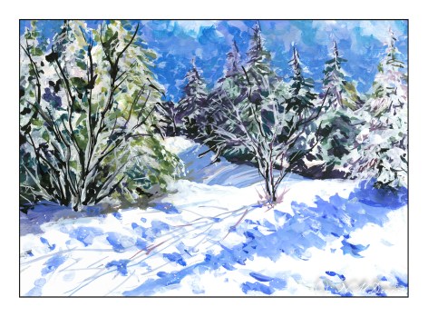 Late Afternoon in the Mountains – Gouache – 1-19-2023