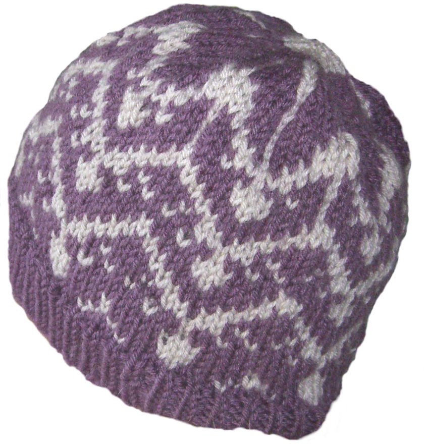 An easy-to-knit color pattern hat or beanie which I designed for my sister-in-law, Susie. This hat will knit up quickly using two skeins of Lion Brand’s “Vanna’s Choice” which is perfect for those allergic to wool, and who want a soft hat that can be thrown in the wash. If you want, embellish Susie’s hat with a pompom.