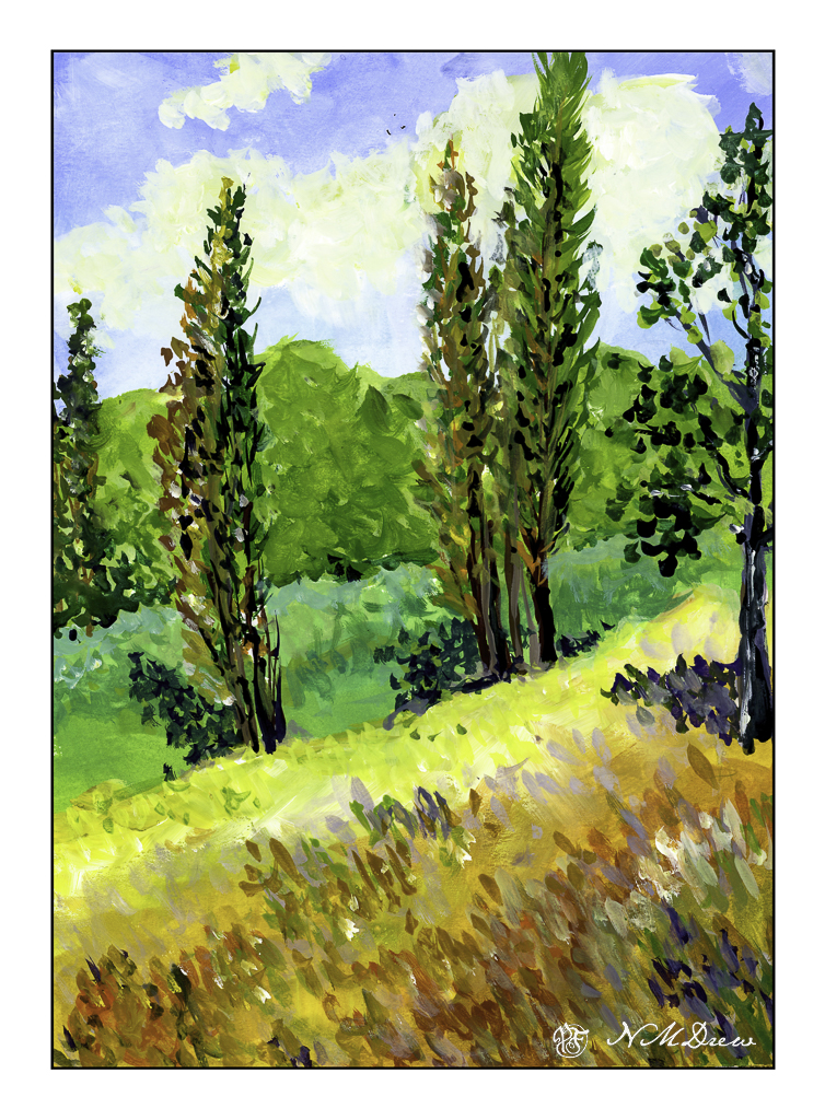Poplars (from Loiseau) – Gouache – 9×12 – 12 March 2025