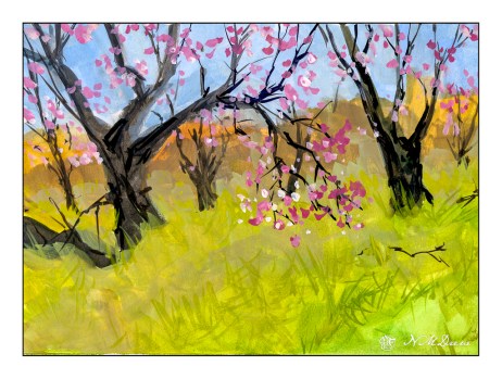 Spring Orchard – Gouache – 9×12 – 12 March 2025