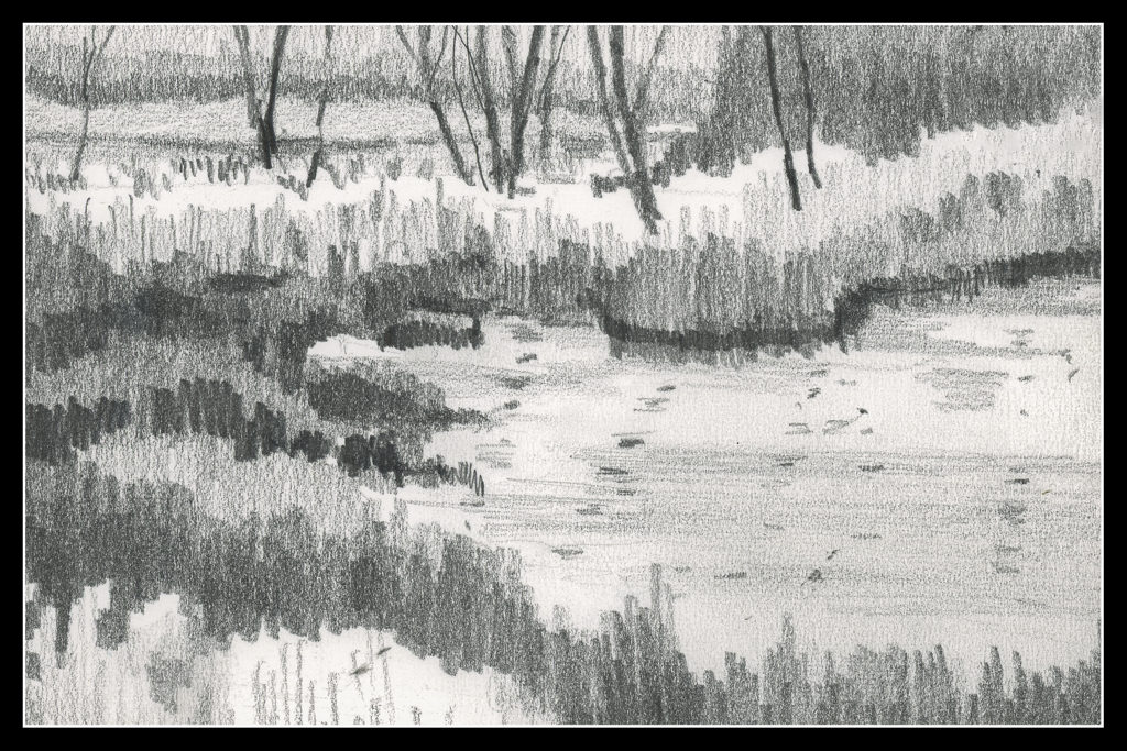 Awhile back, I started a 30-Day drawing challenge. The goal: Create 30 small drawings, value studies, to see shape, value, and ultimately a focal point for a painting. The last means thinking about how you want to lead the viewer into the picture and keep him there – it’s a compositional element I am still learning to implement. I have benefited in the arena of shape and value, so now the focal point is becoming another element to work on.