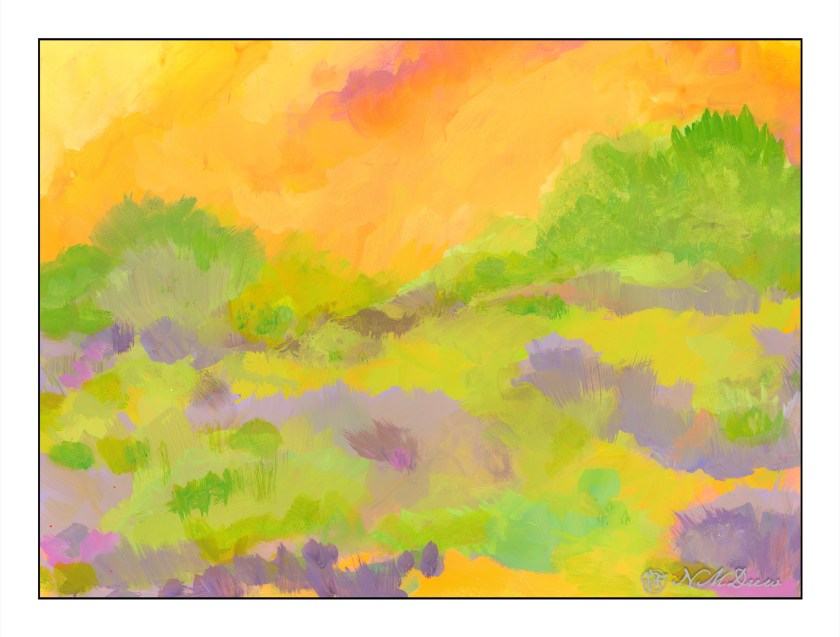 What can I say except this was one hell of a challenge! I wanted simplicity in the form of abstraction combined with atmospheric perspective. Well, the day is crisp and bright, a bit windy, and the light is harsh. Somewhere in there lays a bit of compromise.