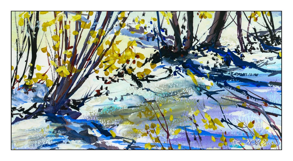 A rather quick sketch of a frozen creek . . . later in the day, sun is going down.