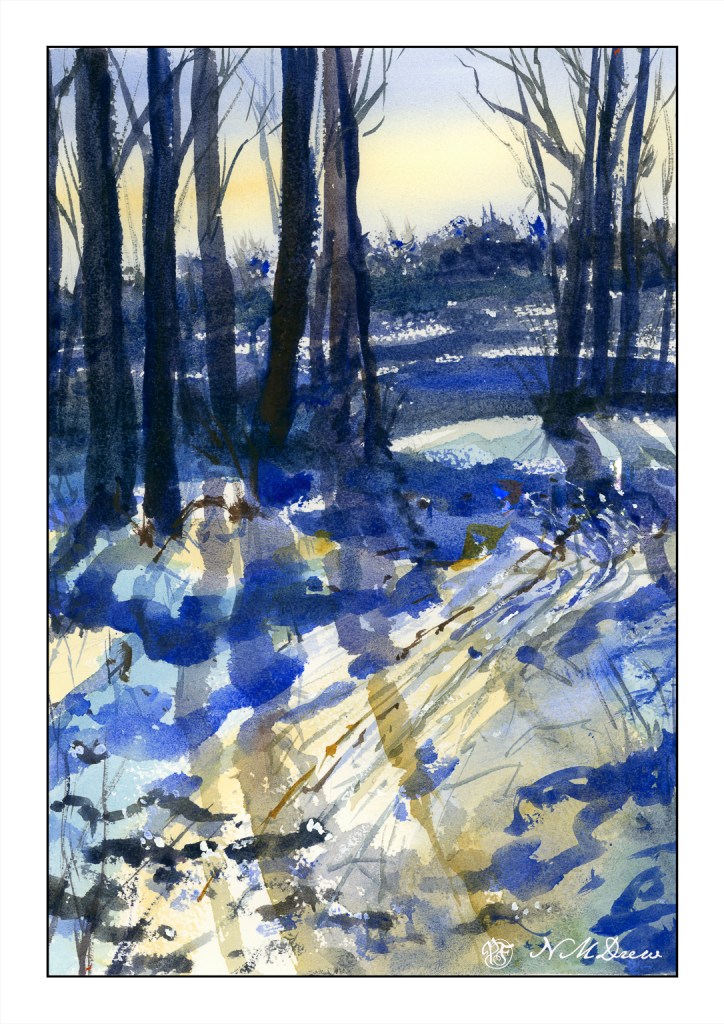 When I lived in upstate New York, the winters were marvelous! Hardwood forests and pine trees all worked together to create a magical land of light and shadow, rolling snow banks, and winter streams frozen and thawed and frozen again. The skies, too, were amazing in their coldness of light that could reflect so brilliantly on the snowy landscape.