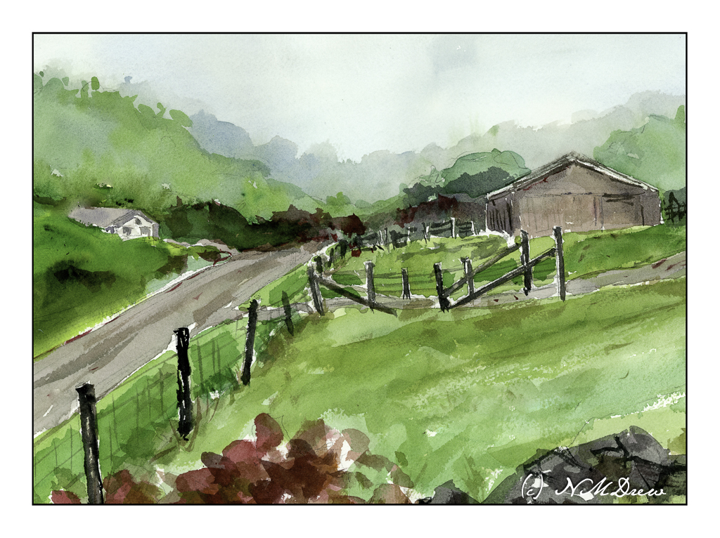 All of Blaukopf’s courses have been a real pleasure to follow. If you like watercolor, I suggest her more than any other online teacher. I never fail to learn something new. For instance, in this class, the golden middle ground, just above the opposite shoreline, included painting the colors up into the trees on the left. From there, at a later point, more detail was added.