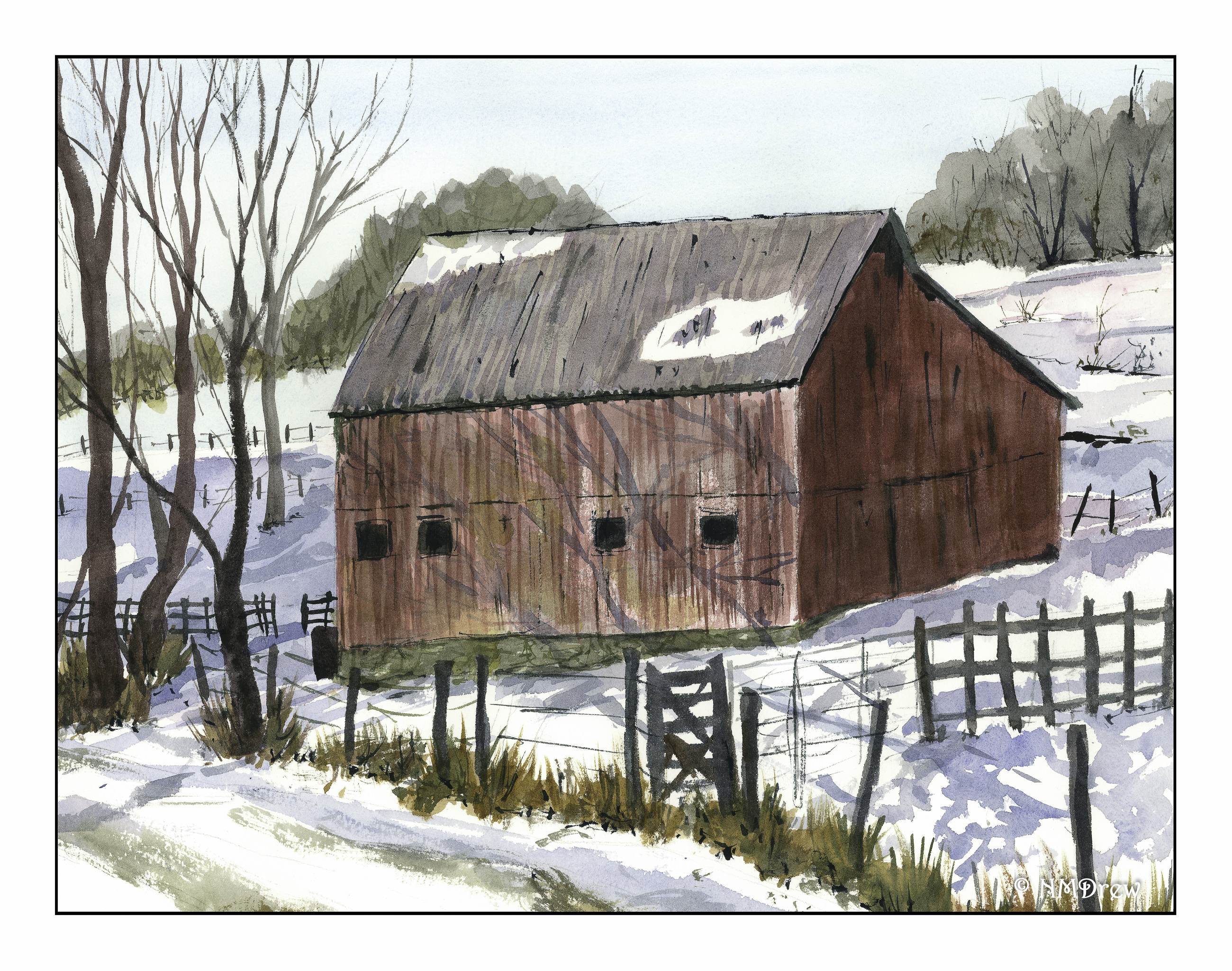 Of course, we all want our fans to tell us how talented we are and what perfect paintings we do! Sadly, that is not reality. In and of itself, The Red Barn is not a bad painting – I am rather pleased with it. However, my husband is my nearest critic, and as he knows my issues of late with perspective, he pointed out, “The barn looks warped, like one side is buckling in.”