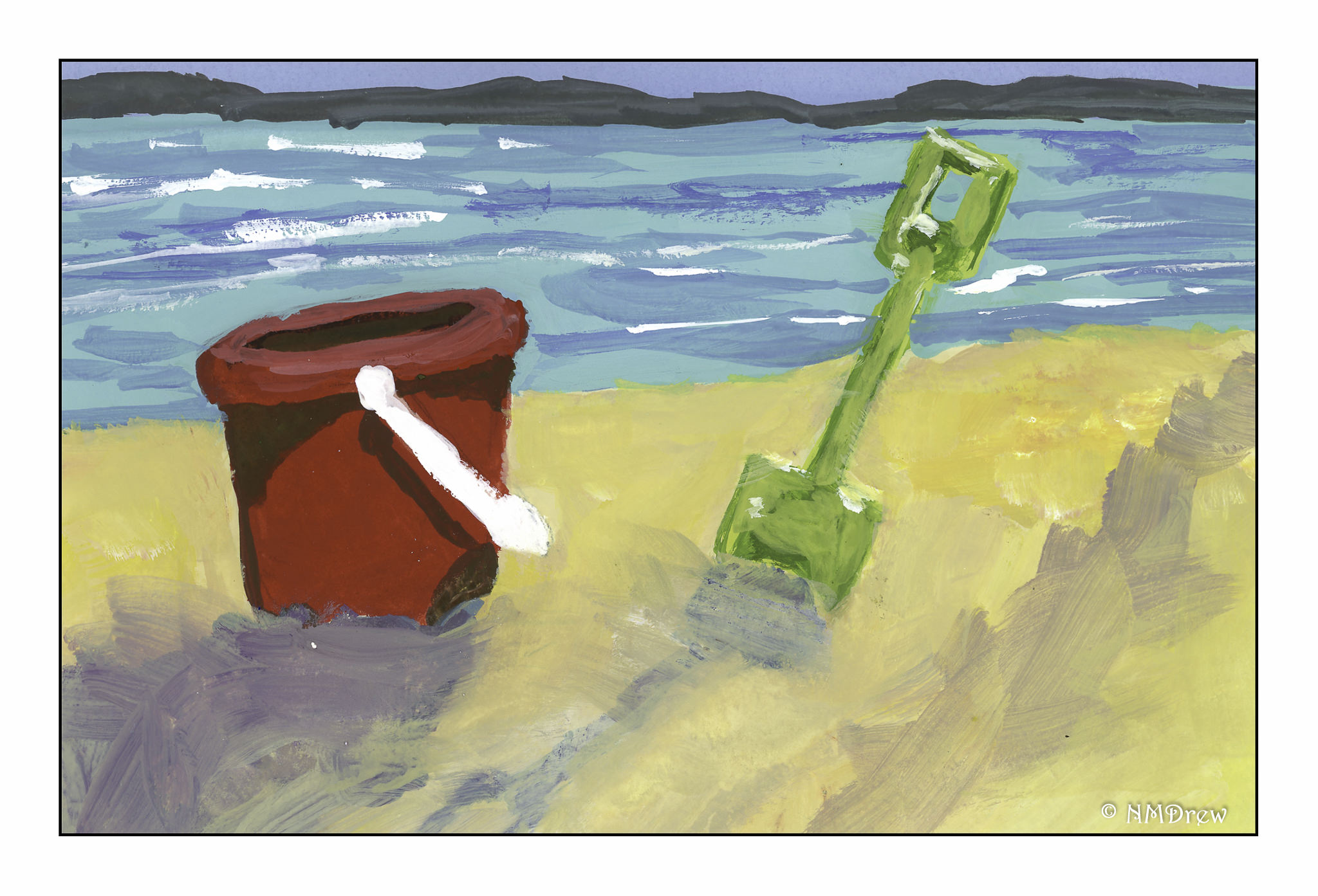 Sort of “meh” about this one.  It was a lot harder to do than I thought it would be – what is more simple than a pail and shovel?  Well, it was!  It’s like there are 3 different styles here – none of which match or integrate well.  I like the shadows on the sand the best.