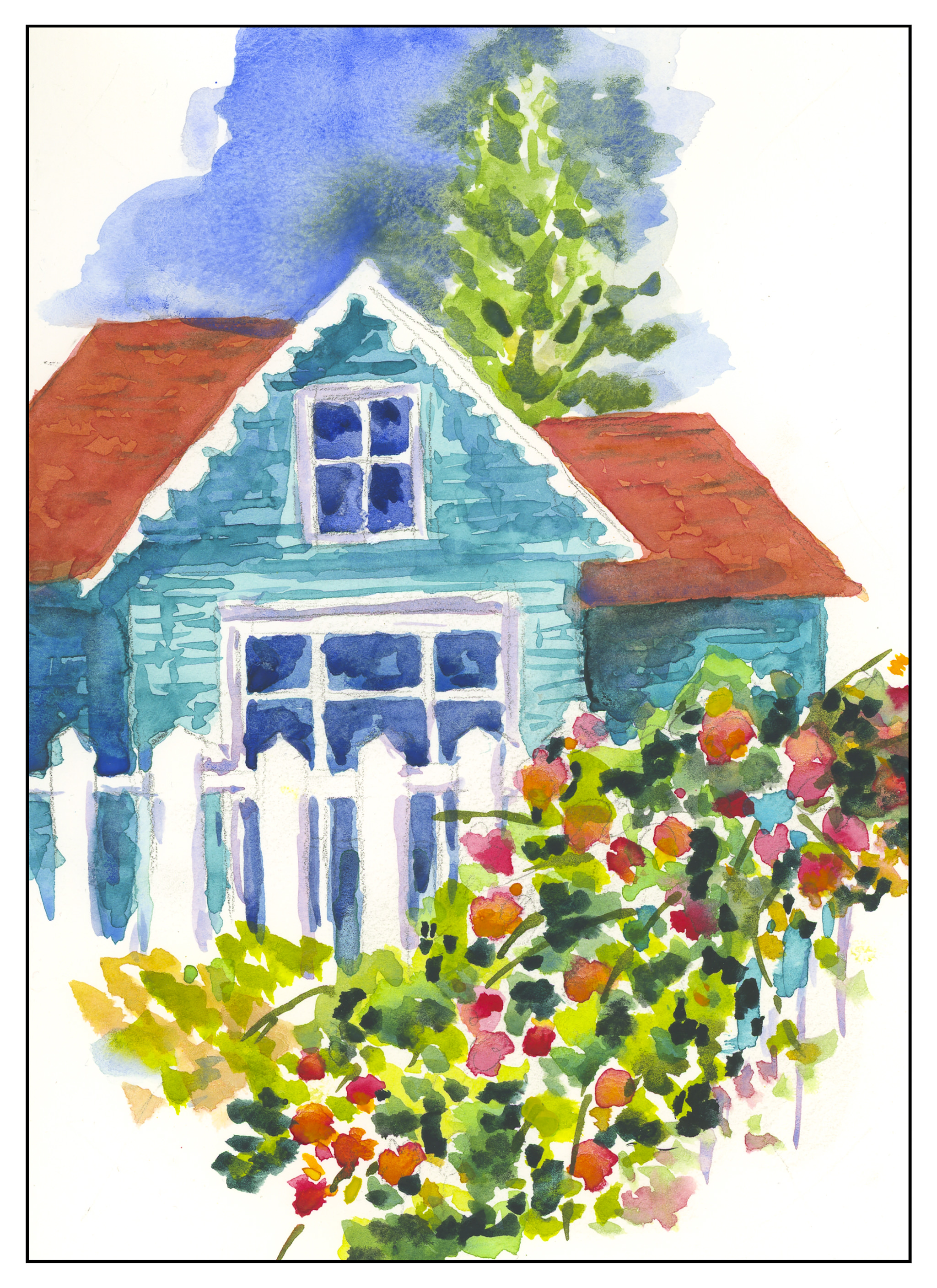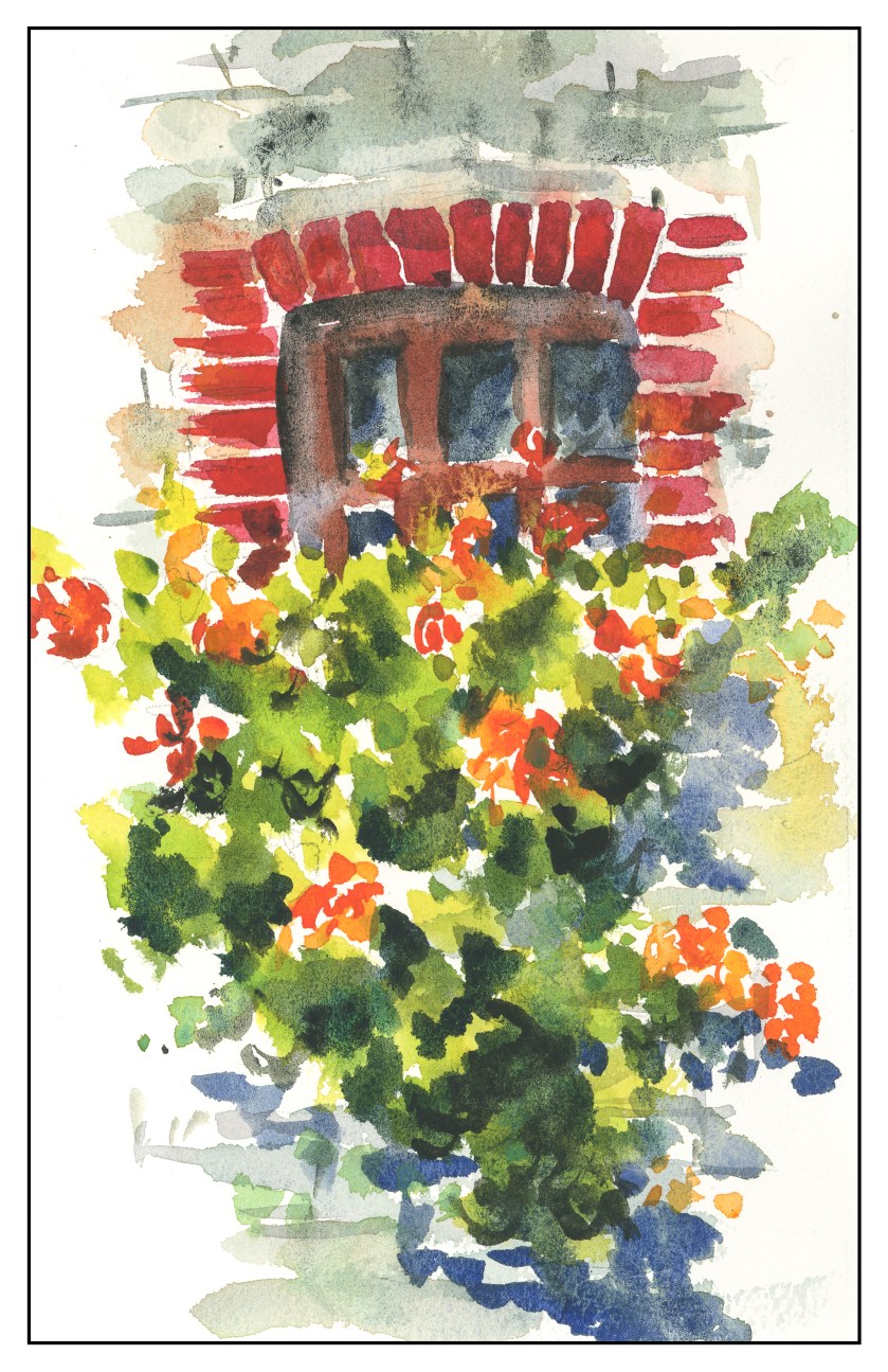 And here is the last one . . . not the best, but one which does have some good areas of contrast, and black lines from an India-ink pigmented pen. Sketchy, painterly, and totally fun to do!