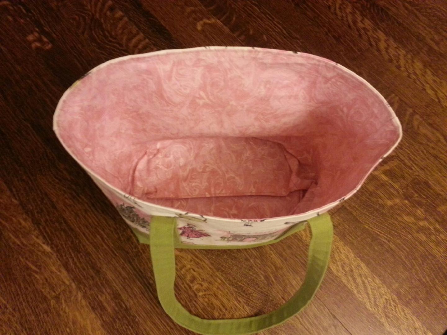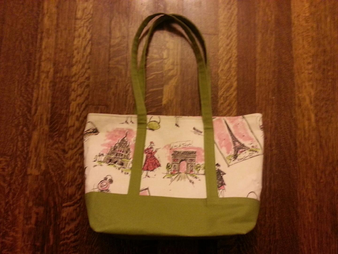 The Parisian scenes are some upholstery fabric, and it was the focal point of the bag. The pink and green matched perfectly!