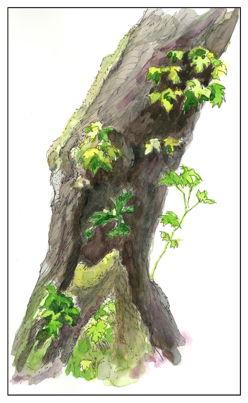 The first I chose was her “Old Broadleaf Maple” – detailed, subtle. And a tree. I love trees! This is my rendering of her example.