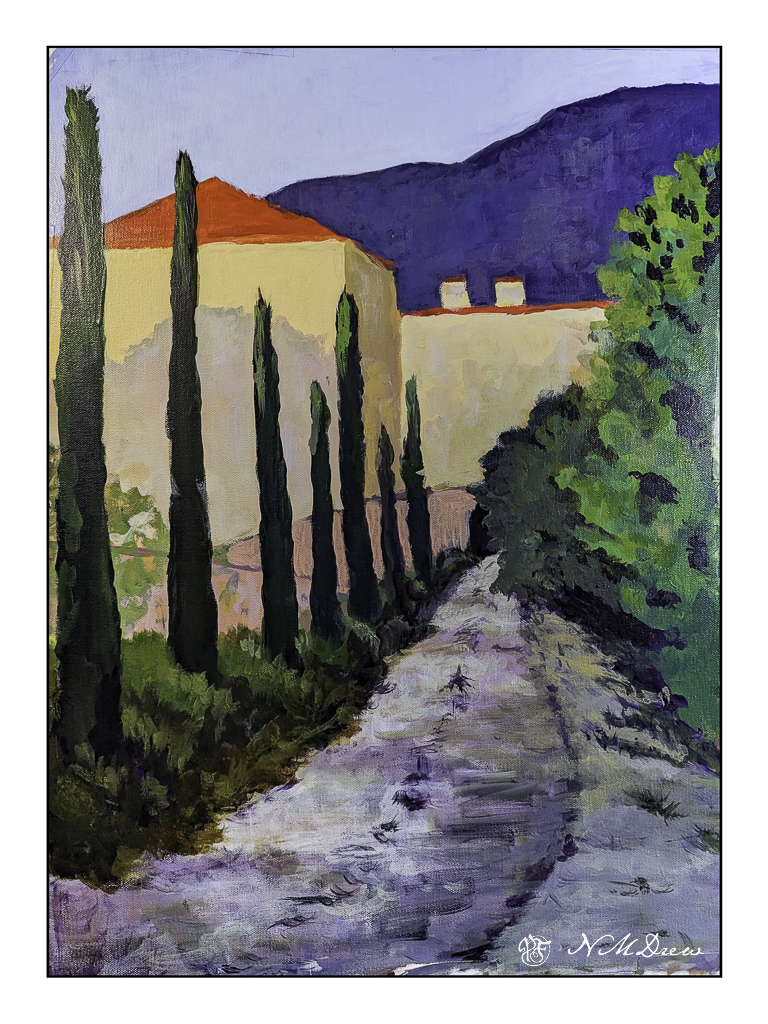 It was a cool, breezy, bright day at the beach. Salty wind. I got sunburned, something I didn’t think about as I don’t hang out in the sun like I used to! It was worth it, though, as I had a good time and came home pleased with my forays, especially into the boat drawing. The succulent was easy and fun – nothing I took too seriously. On the other hand, the cypress trees always throw me a bit because of the way the foliage seems to lie flat across a tree with a few branches – simply put, a complicated flat texture is the only way to describe it.