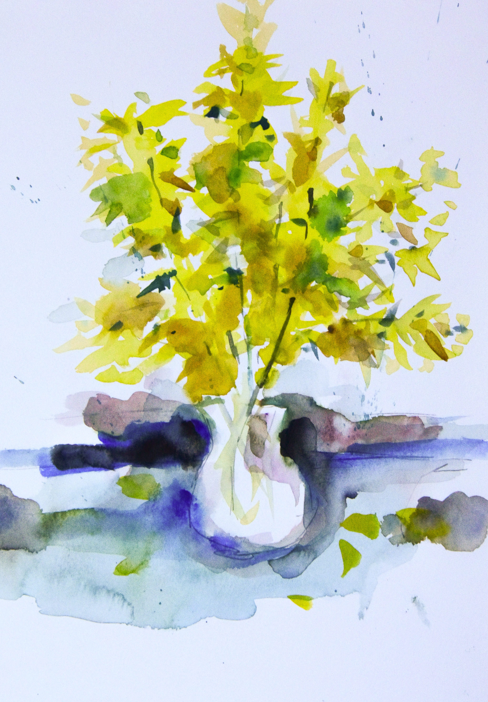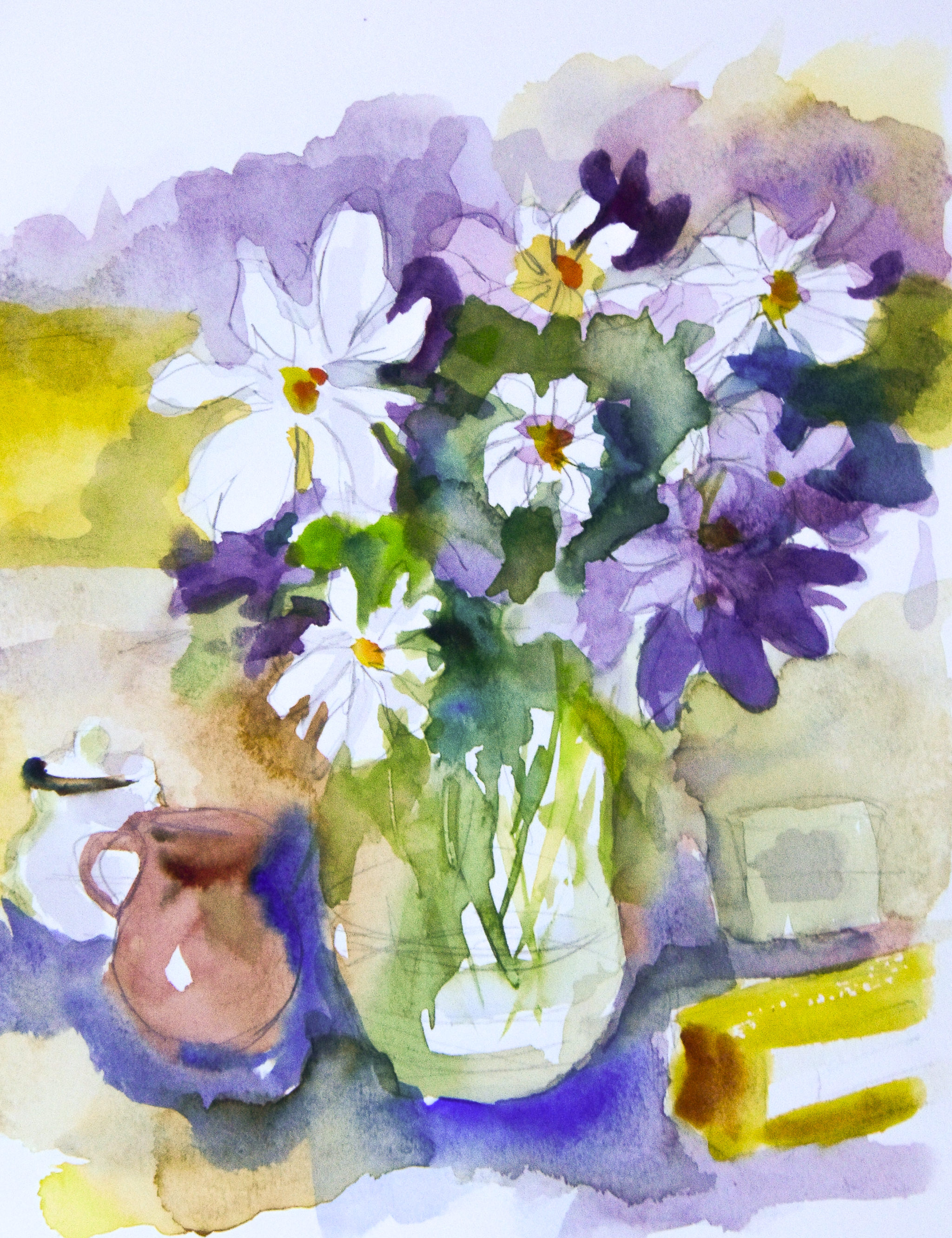 I think one of the hardest things to do is to leave white paper. I just want to paint it all up. And I also want to just keep going on – and this creates mud – without pause for paper to dry and paint to settle. Rush, rush!