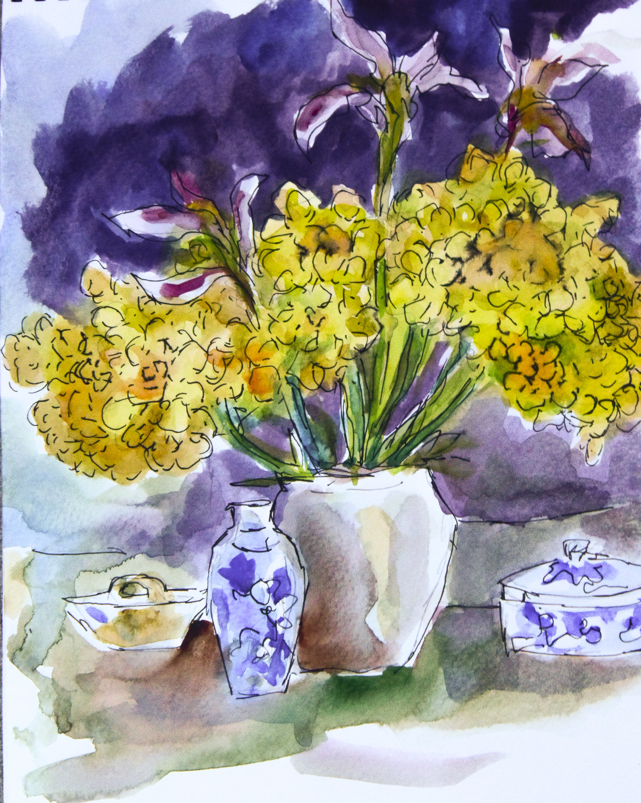 And here is the last one . . . not the best, but one which does have some good areas of contrast, and black lines from an India-ink pigmented pen. Sketchy, painterly, and totally fun to do!