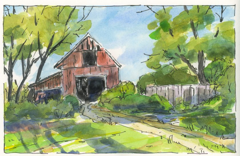 In a number of circles, there is an “urban sketch” style done with ink and watercolor. Drawing and painting are combined. Some people are masters of it, in my opinion, having a good balance of ink and clear watercolor, with one or the other predominating, and the other not overwhelming its partner. (I hope that made sense!)