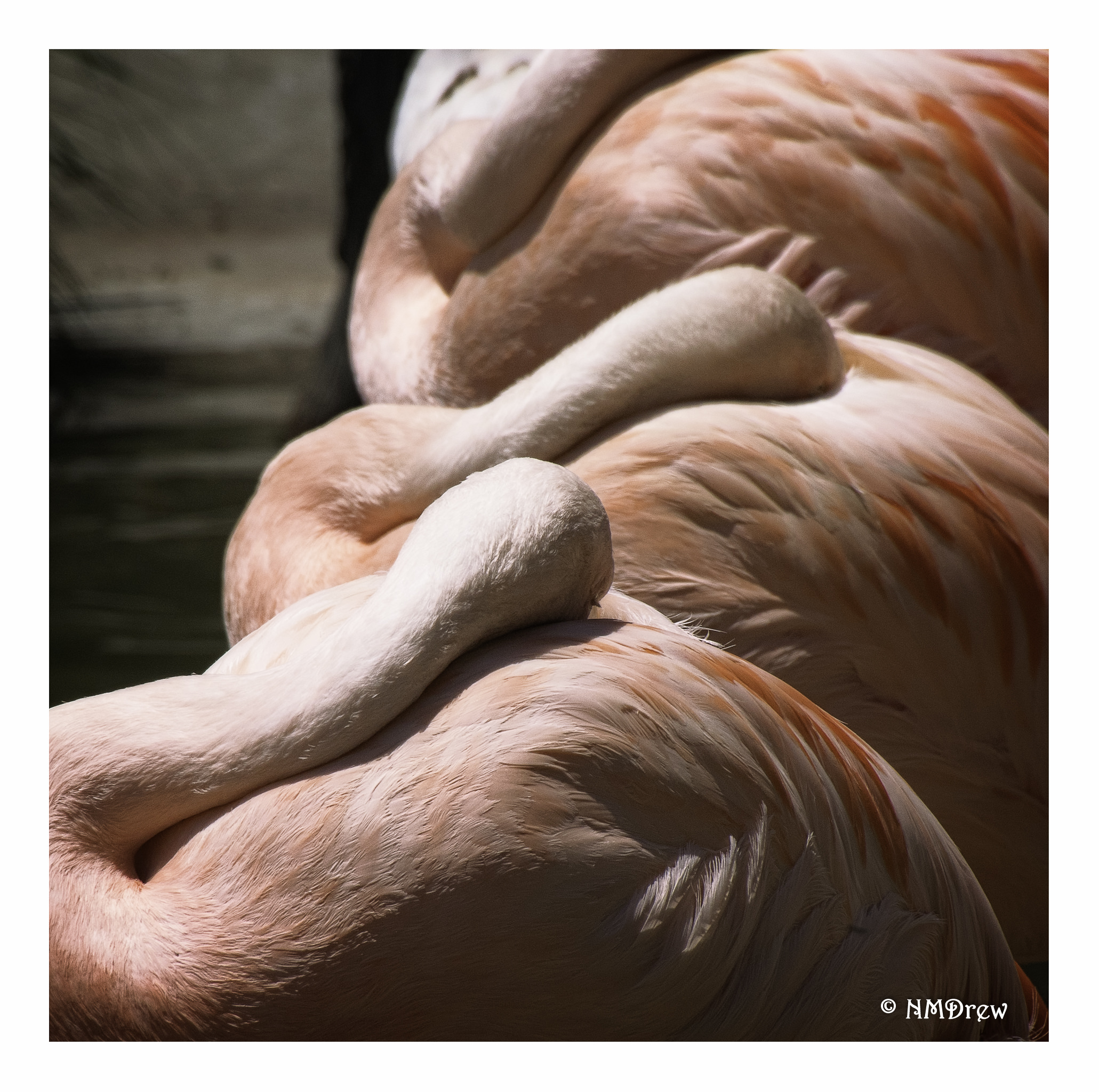 This is from a trip to the zoo! I love flamingos, but you have to admit, they are pretty messy birds. They live in large flocks, on muddy ground, and filter for food in muddy water. Additionally, they moult, leaves fall into the water, and the whole place can become rather rank.