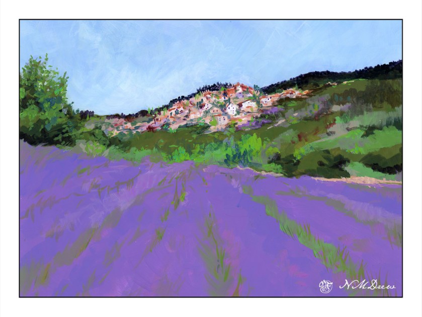 The original painting by Claude Monet was painted in 1874 and measures approximately 22 x 29 inches. My painting measures 11 x 14 inches, so it is close to the same proportions. I left out a few things simply because I was not trying to replicate Monet’s painting but catch its sense of spontaneity. This spirit is what I found refreshing, and while Monet probably finished this painting alla prima, I spent about 6 hours in the studio. He used oils. I used fluid acrylics.