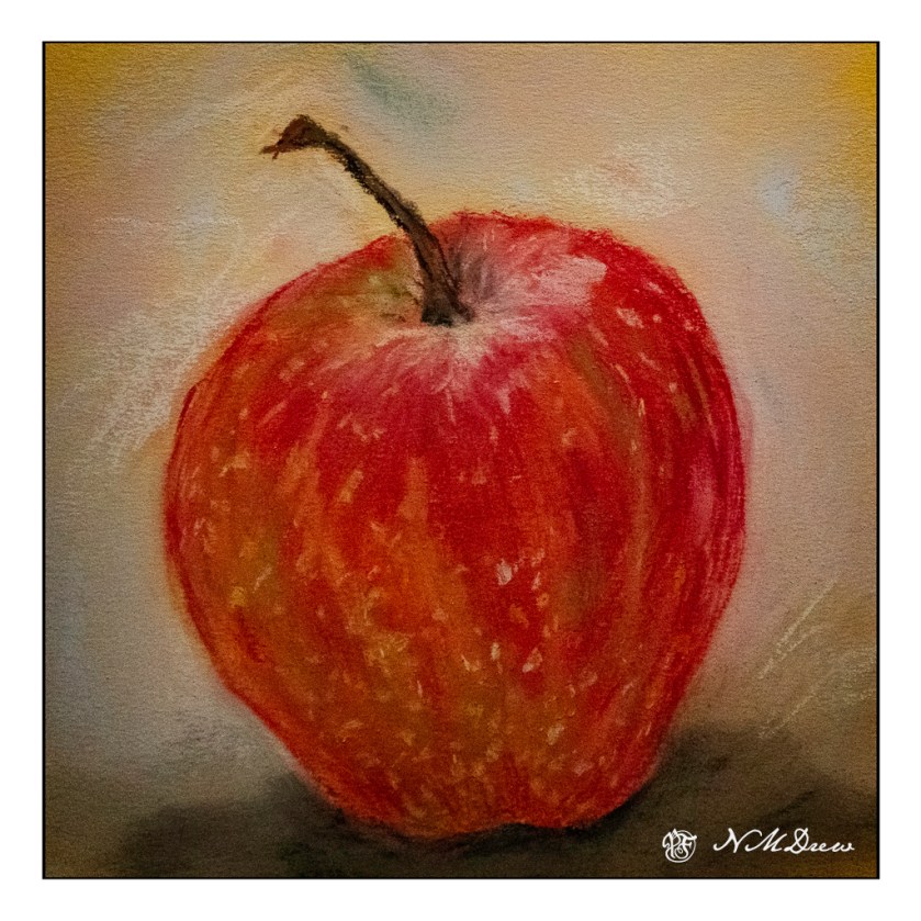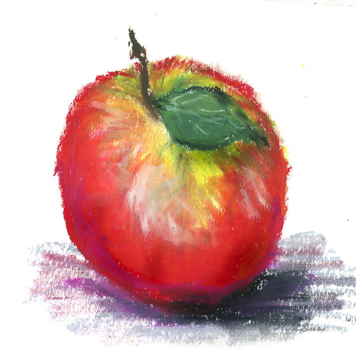 I was doing pastels a few years ago and really enjoyed the medium. It is a combination of painting and drawing, both of which I like. Apples are rather generic and very recognizable, and cheerful, too, if you like bright red. I do like bright red, and so here we are.