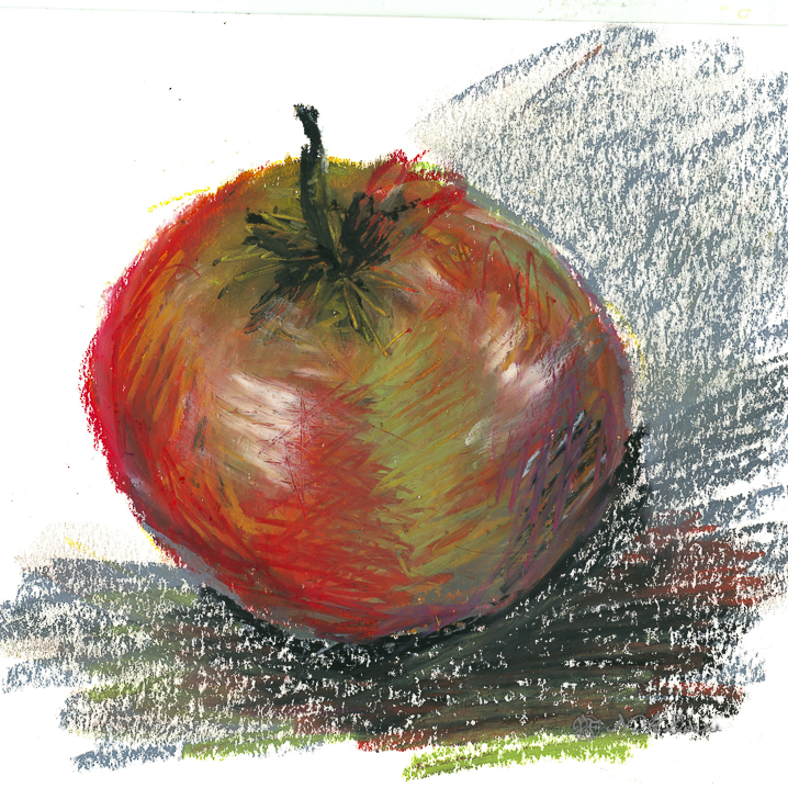 Okay, stop laughing. There is a definite pack-rat gene in the family, specifically on the paternal side (sorry, Dad!). De-pack-ratting requires a break, and a break from watercolors means using something else. Enter revisiting pastels. I did an apple.