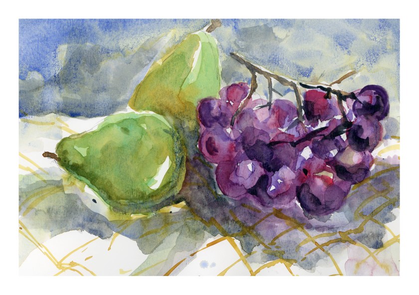 The first painting is not quite where I want it to be. I was focusing on contrast and shadows to separate one piece of fruit from another. The same for the grapes and apricots, which is a bit more successful although I am not quite pleased with it because I think it is a bit overworked. It’s interesting how I feel pretty good about some things – more confident – and less so with others. I guess we all do.