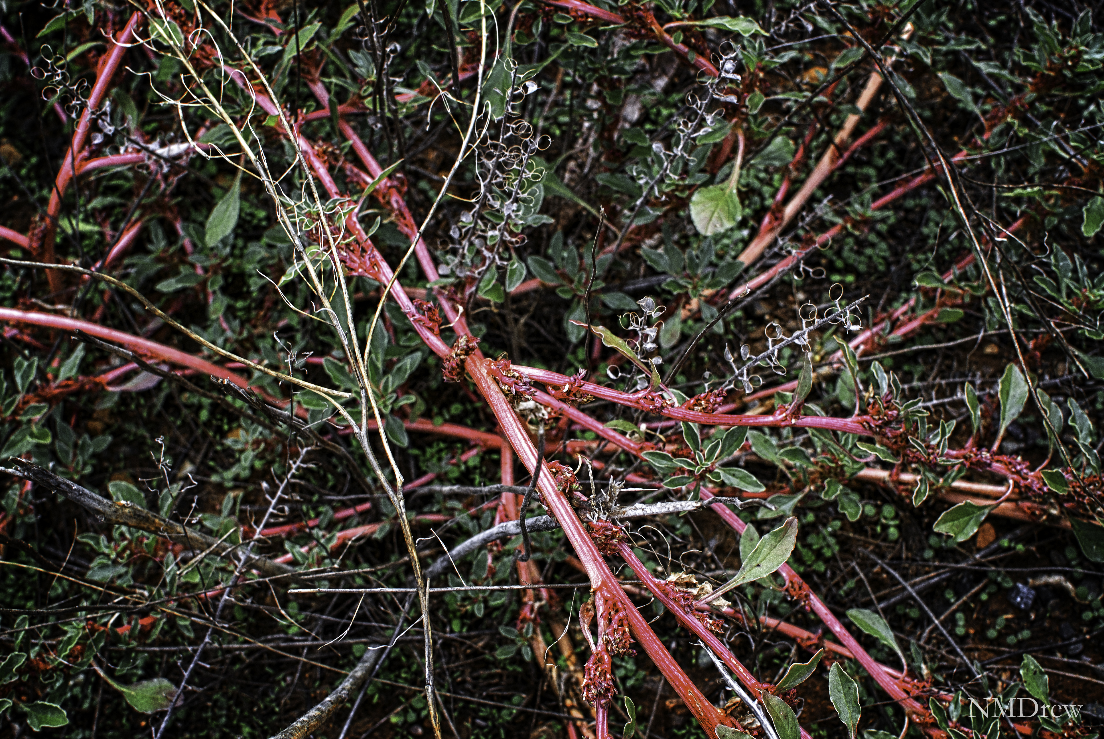 Red Stems, Green Leaves The high desert is a place filled with a variety of plants and geological formations. Right now, we are in the 4 Corners area, about 20 miles outside of Durango, Colorado. Here is a plant I found underneath the pinon and juniper trees.