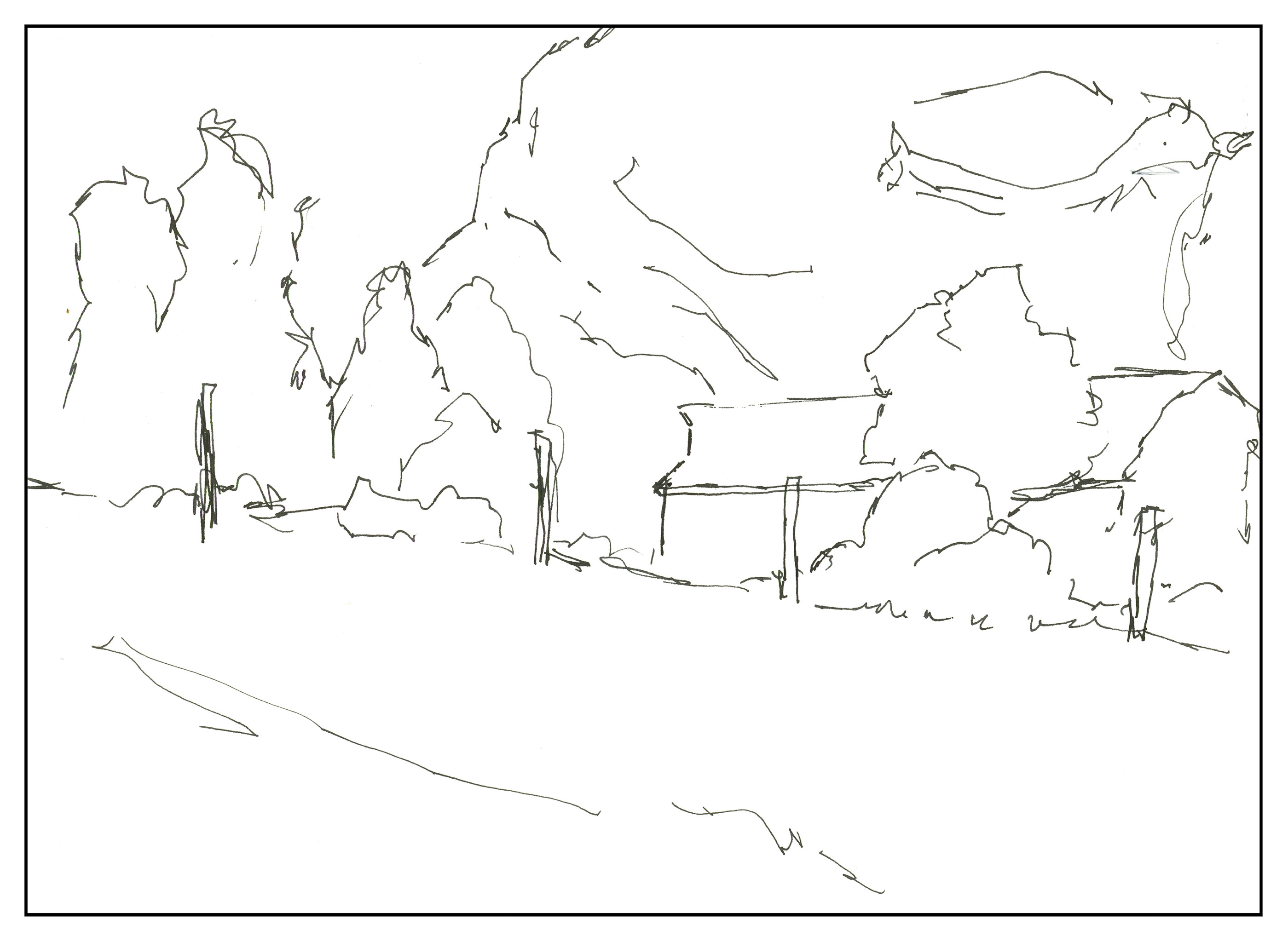 I outlined the big cactus plant on the left with ink and then painted it. The others I did with direct watercolor. Combining outlines with free form painting is rather fun, and a good way to continue practicing. I think the outlines made for a more successful cactus but not having outlines also makes it very important to look at shape and value. Practicing both in the same painting is rather an interesting process.