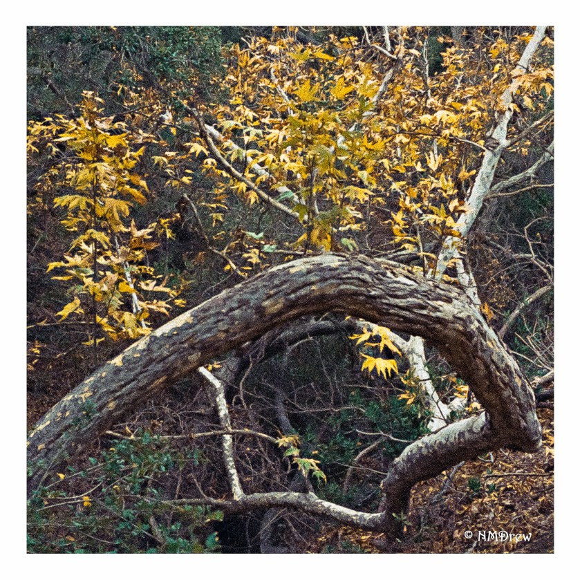 This sycamore curves and twists over a steep fall into a barranca. How it hangs on is rather amazing! And when the leaves change, it is a stunningly beautiful tree.