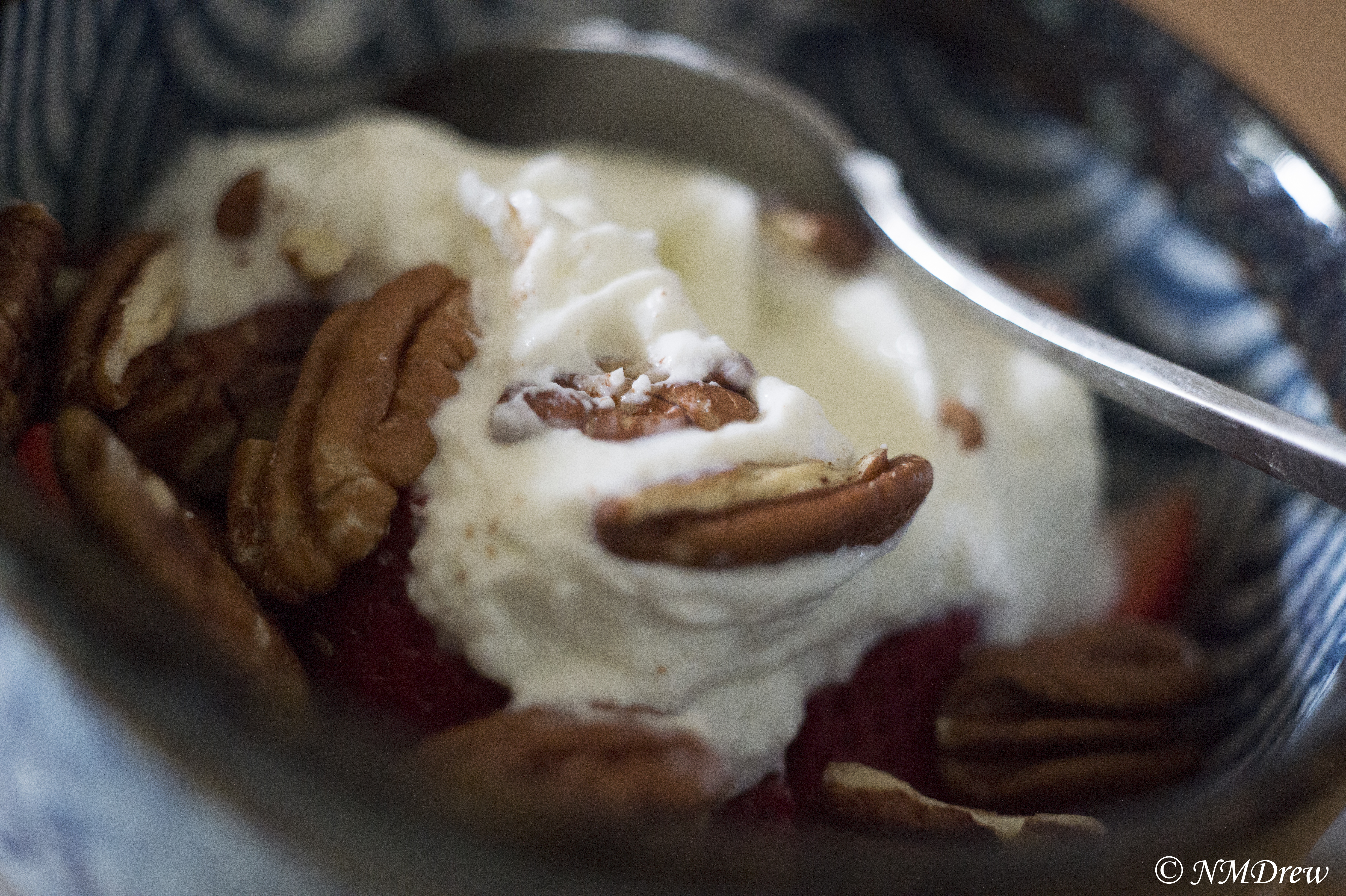 First of all, the picture above is my breakfast this morning – yogurt, strawberries, and pecans. This was shot at iso 4000. Certainly a good reason to use this camera at night! If you click on it, you can see it full-size – you may need to do it twice to see it at 100%.
