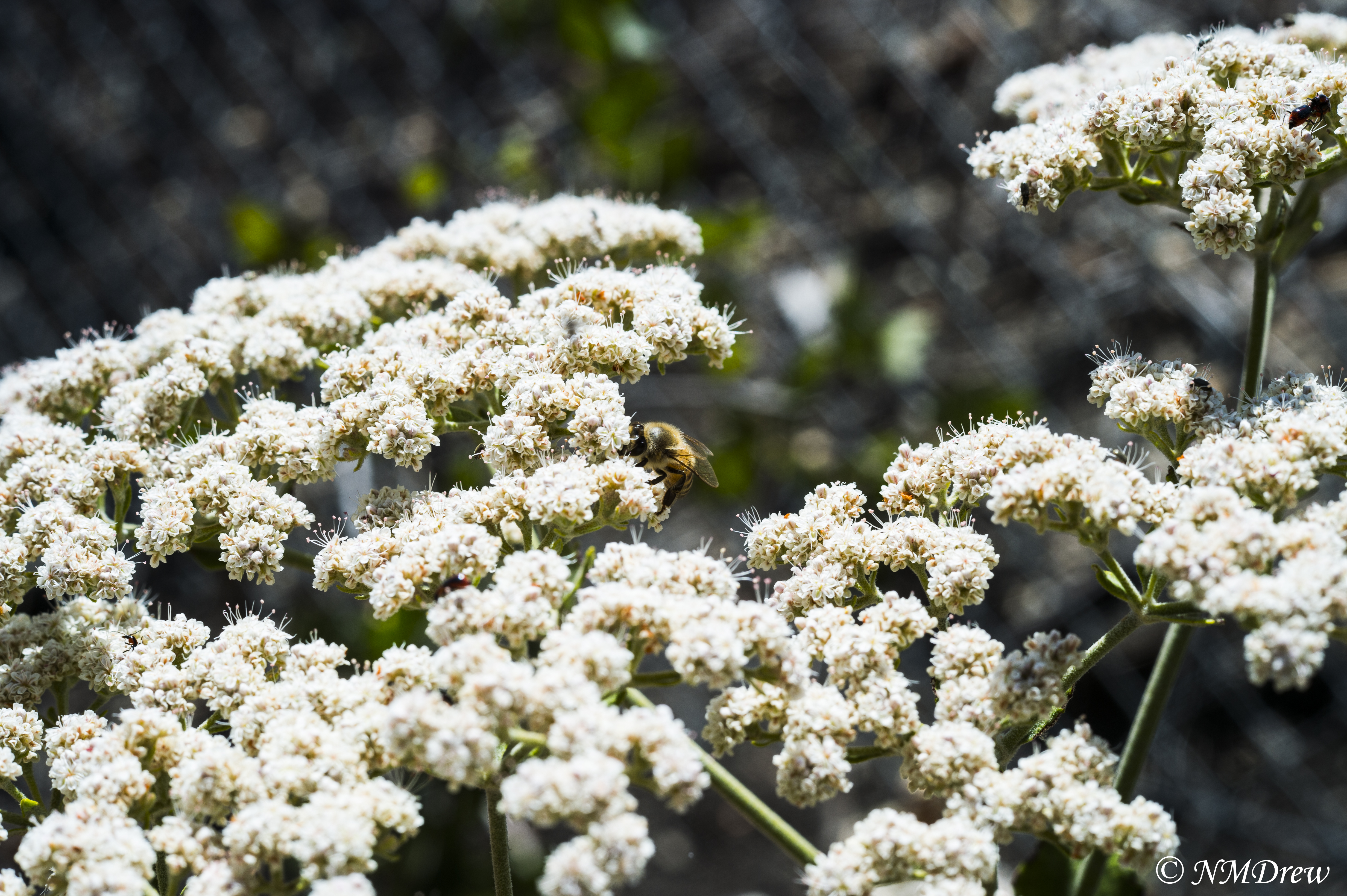 The next few pictures are done using my Elicar 55mm macro lens. This is a lens that is about 40-50 years old and completely manual for focusing. There are complaints that, as a retro styled camera, a split-screen focusing screen should have been included. Maybe. However, I found that the focusing dot and the screen in the viewfinder both work very well together. This bee was shot, handheld, at iso 64 – one of the lower end iso settings – at 1/200 s. Not sure about the f/stop. Click it, too, to see it full size.
