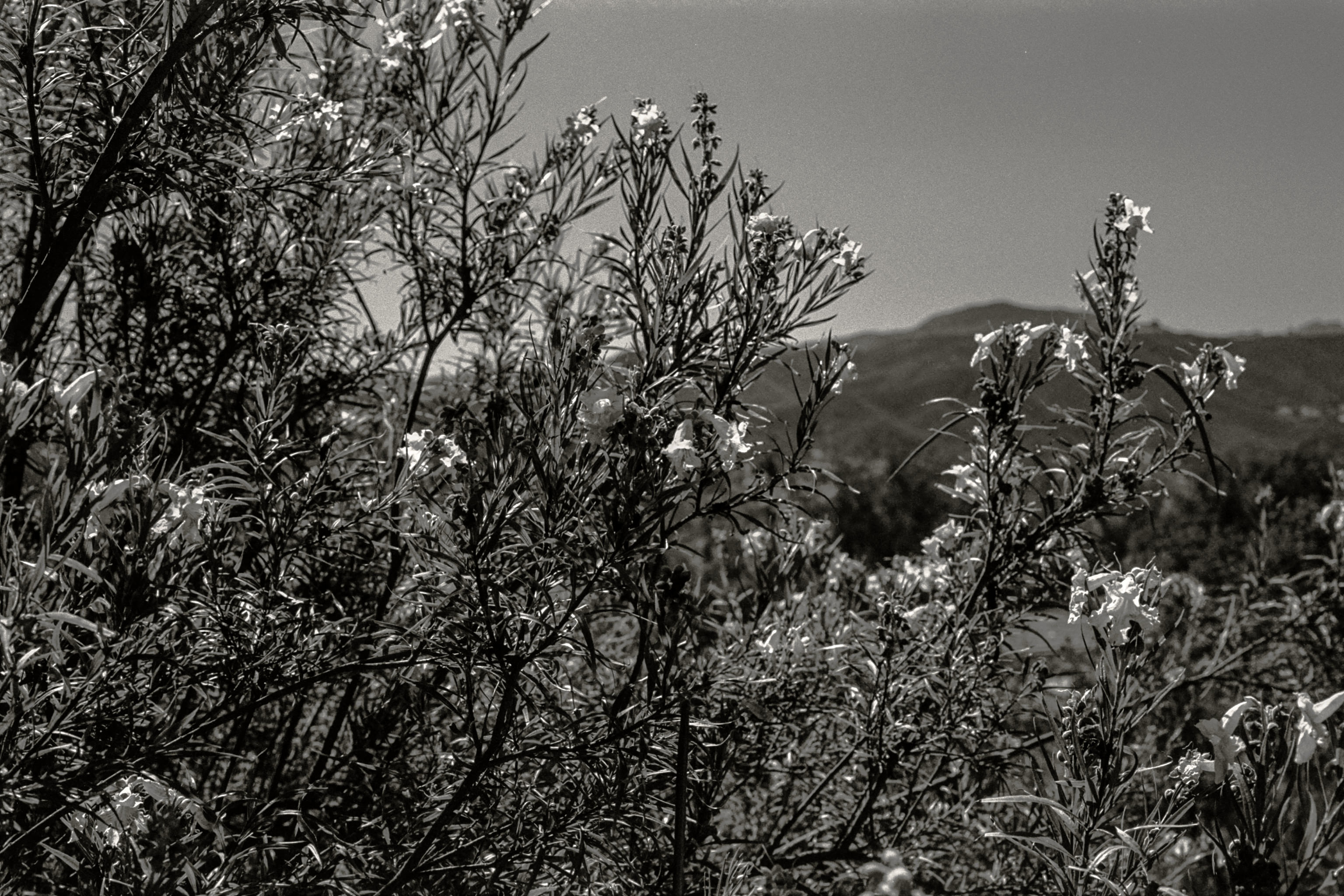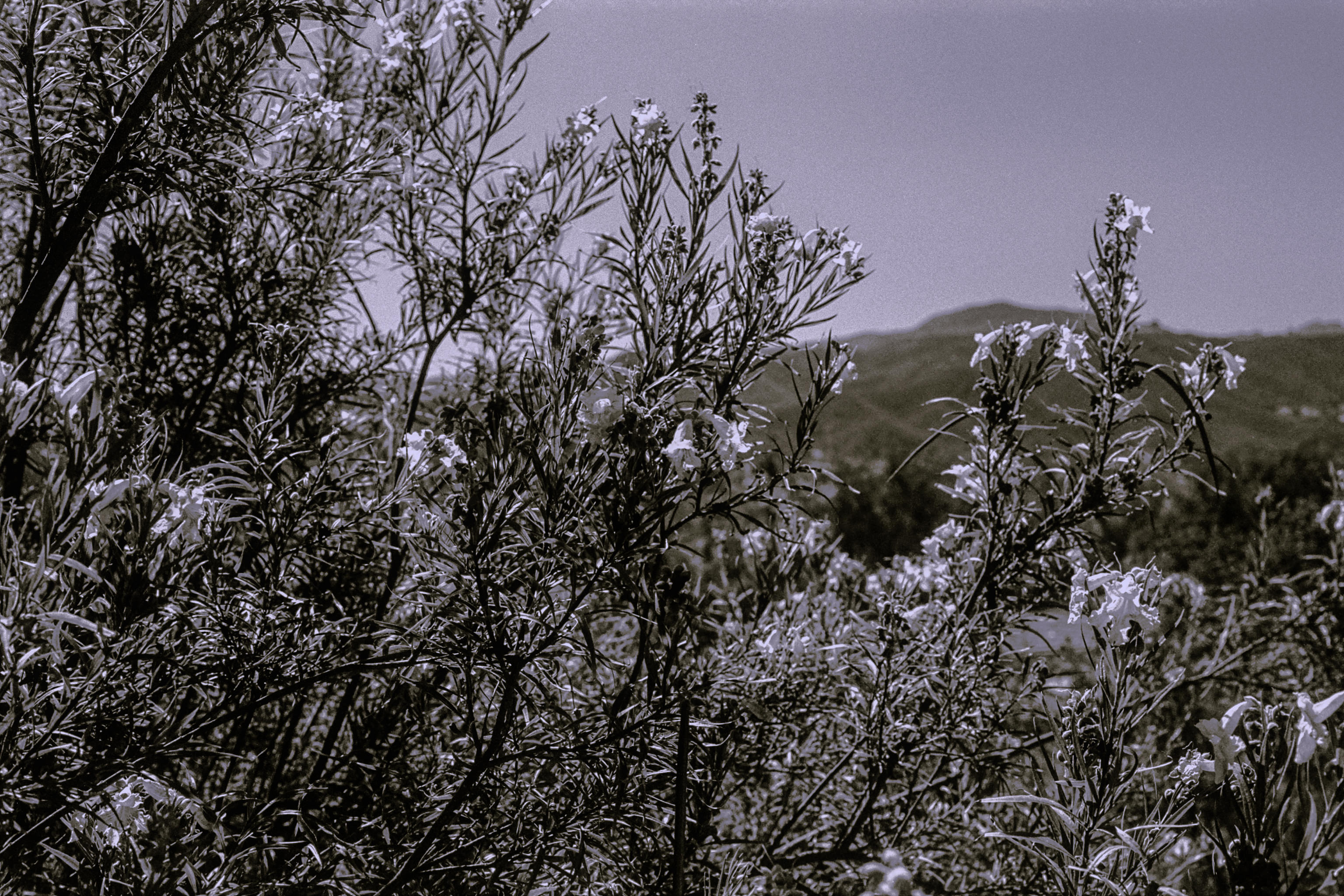 Below is the original black and white image, shot on Ilford FP4+ with an orange filter – an Orange 21 specifically – using an Olympus OM-1n and 50mm f3.5 macro lens.