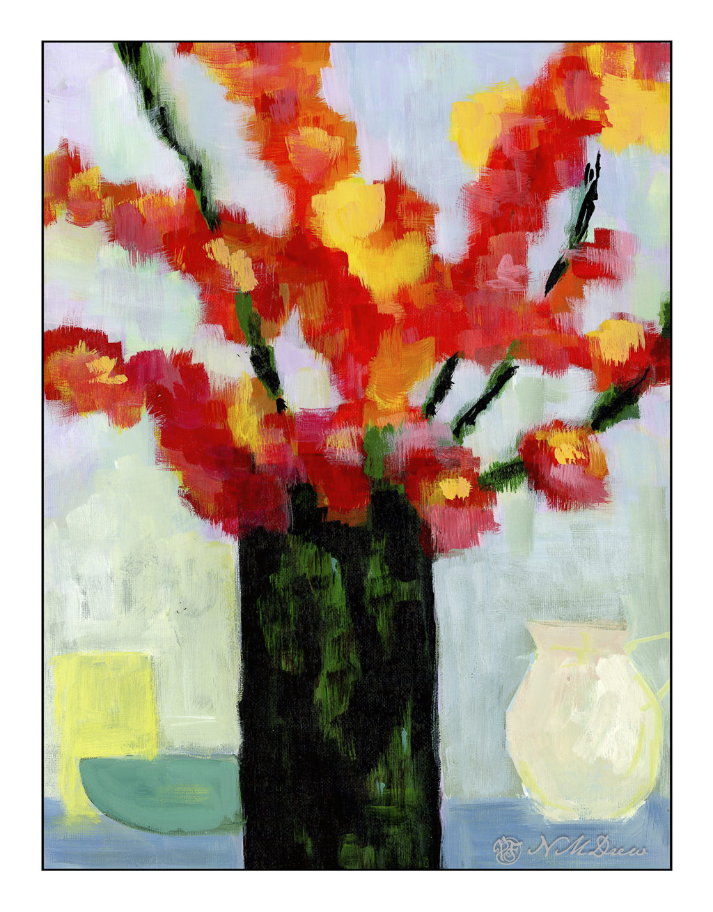 Erin Hanson’s colors always appeal to me, and, of course, color is subjective. Her sense of composition is one of her strong points, and her brushwork is enjoyable because it creates an energy that works well with much of her subject matter. I may try another one, working a bit differently than I did here, because the entire process was both challenging and satisfying. On top of that, she loves landscapes and the great outdoors – much preferable to portraits I think!