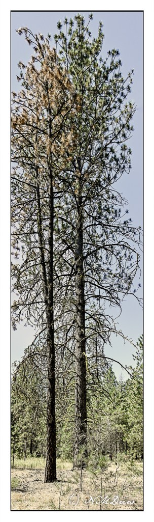 Planning a loose painting takes a bit of forethought. I put in the tree trunks first, then some foliage and land. The sky was done after all these with a large, soft flat watercolor brush. Final touches came after all was dry. I made this into a panorama, spanning 2 pages of my sketchbook, to give a sense of expanse. In the end, I was rather pleased with this.