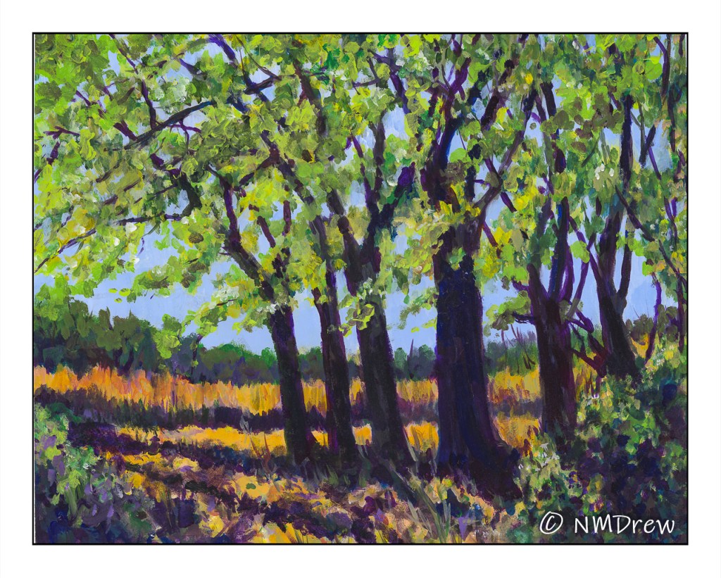 Most of my brushwork tends toward dabbing on dots, which is great for pointillism and impressionistic painting, so I worked at creating lines, as seen on the grasses in the background, along with using a flat brush and using its tip or sides to work paint in a more up / down, side-to-side manner. My next painting is going to include these types of brush strokes, just because. It never hurts to try things you don’t usually do.
